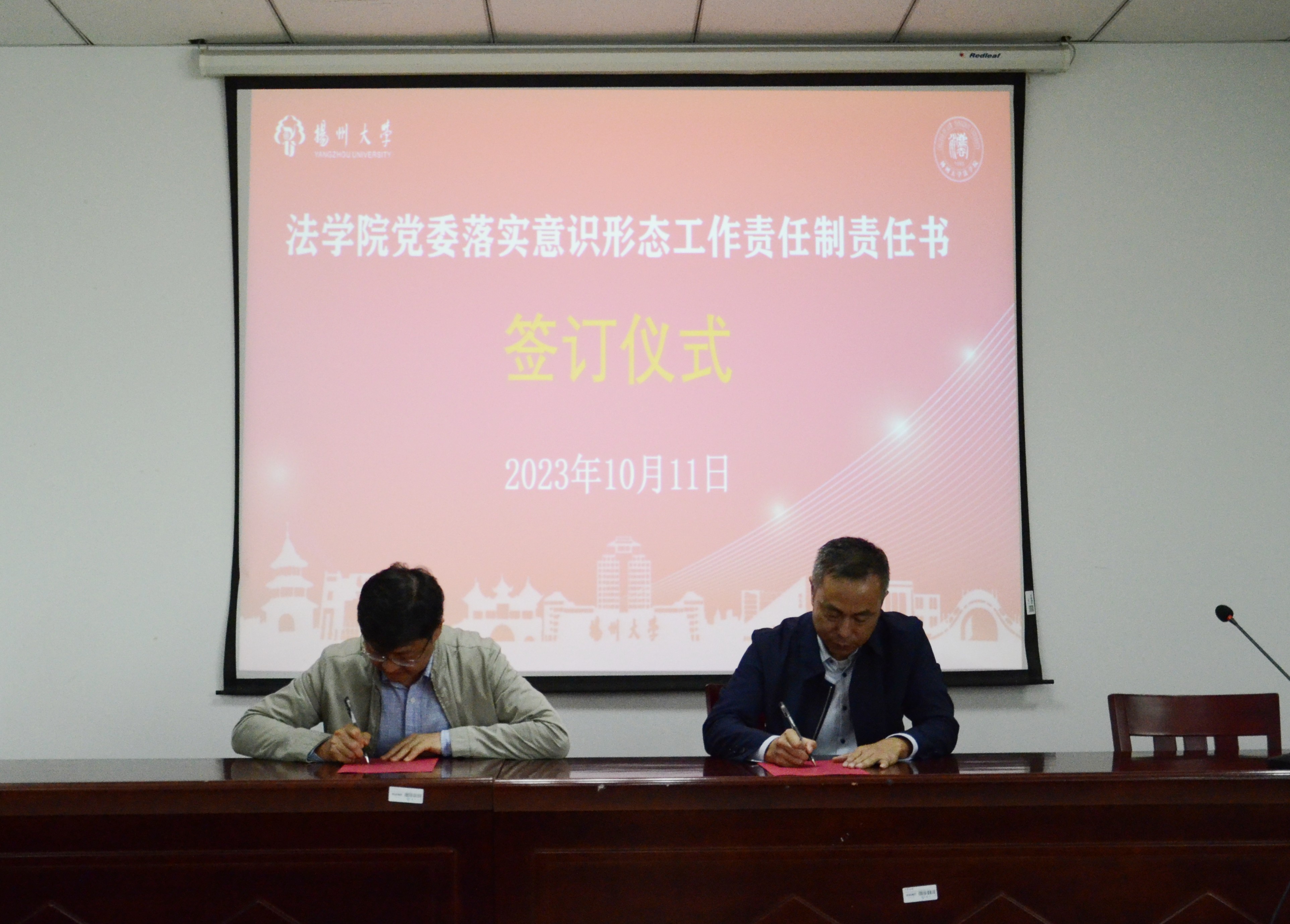为进一步加强意识形态工作、党风廉政建设和校园安全综合治理工作,营造风清气正的政治生态和安全稳定的校园环境,10月11日下午,学院举办了意识形态工作、党风廉政建设和校园安全综合治理工作责任书签订仪式,相关责任人与责任对象按照责任网络签订了责任书,全体教职工参加了本次仪式。
