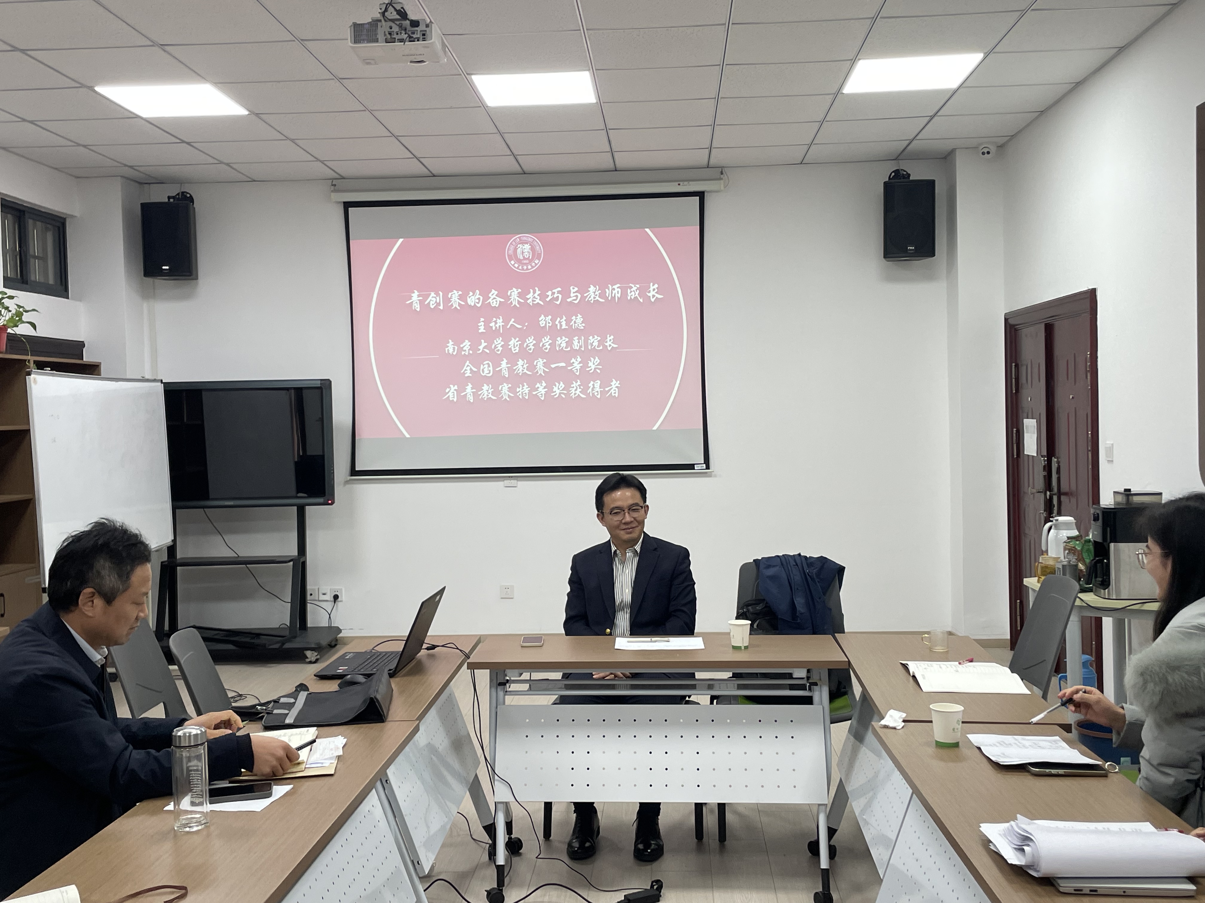 邵佳德副教授针对青年教师大赛,从竞赛、教学与师道三个维度,深入浅出地剖析了教学中的难点与痛点及竞赛技巧,并分享了科研创新的方法和思路,讲座内容极大地激发了青年教师的教学与科研热情。在邵老师的引导下,青年教师们积极参与讨论,交流彼此的教学心得与科研体会。活动现场气氛热烈,思想碰撞不断,大家纷纷表示受益匪浅。