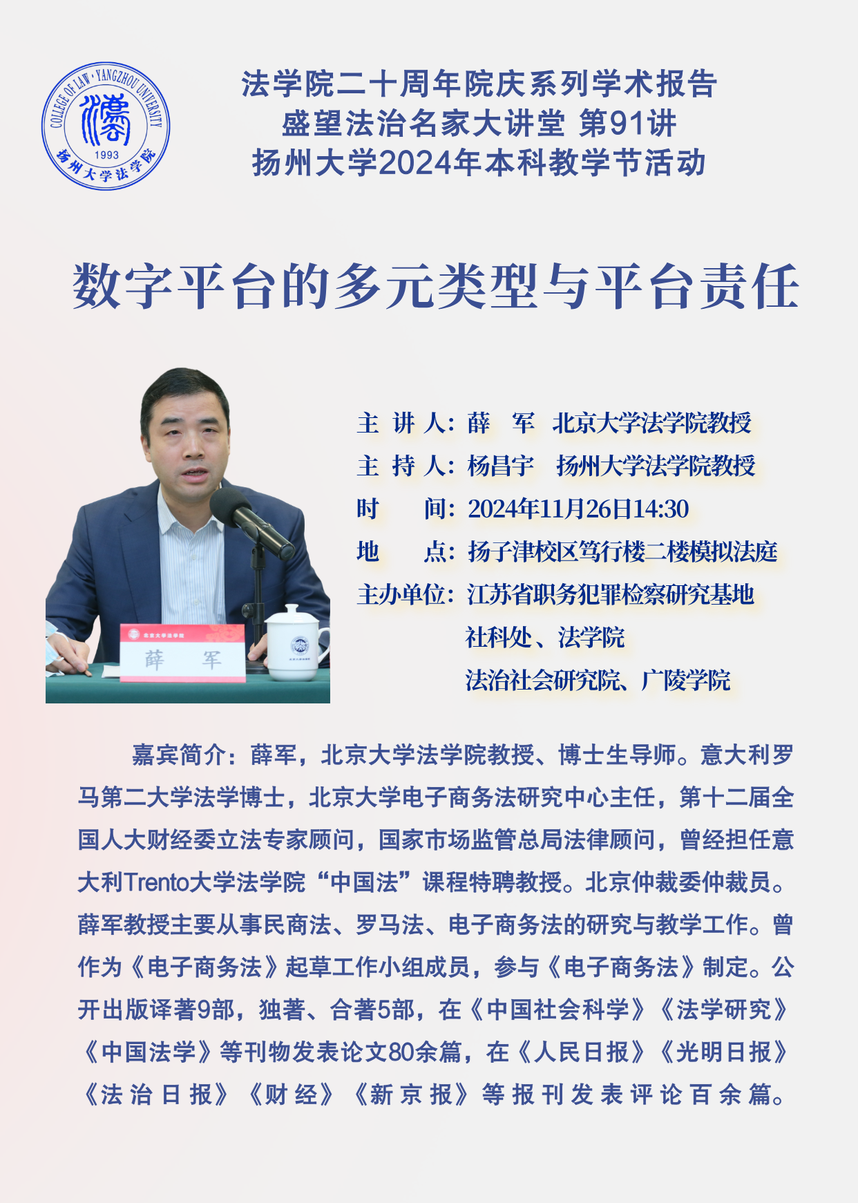 法学院二十周年院庆系列学术报告 盛望法治名家大讲堂第91讲 扬州大学2024年本科教学节活动