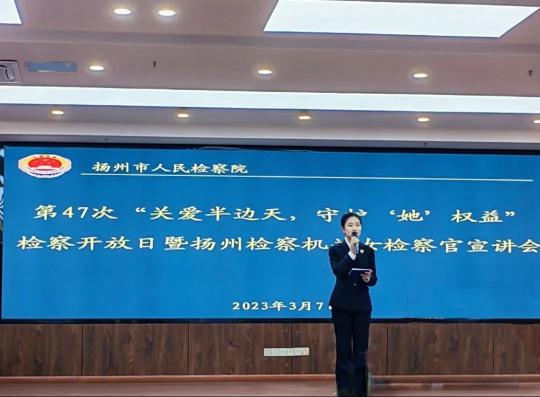 与会人员共同观看了扬州女检察官宣传片“寻找木兰”,新时代的花木兰就在身边,并正在以实际行动展现着女性风貌。在聆听女检察官们的办案故事和体会的过程中,大家全方位感受到检察机关守护公平正义、维护妇女权益的信心、决心和执法为民的初心、恒心。女检察官们用“她”力量,以柔情和担当助人纾难,给民众以力量和希望。