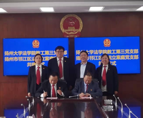 10月30日上午,我院教工第三党支部与扬州市邗江区人民法院立案庭党支部在扬州市邗江区人民法院举行共建签约仪式。院党委书记刘永平、扬州市邗江区人民法院审委会专职委员成谷信、院教工第三党支部书记孟咸美、扬州市邗江区人民法院立案庭党支部书记刘伟炜参加了共建签约仪式。