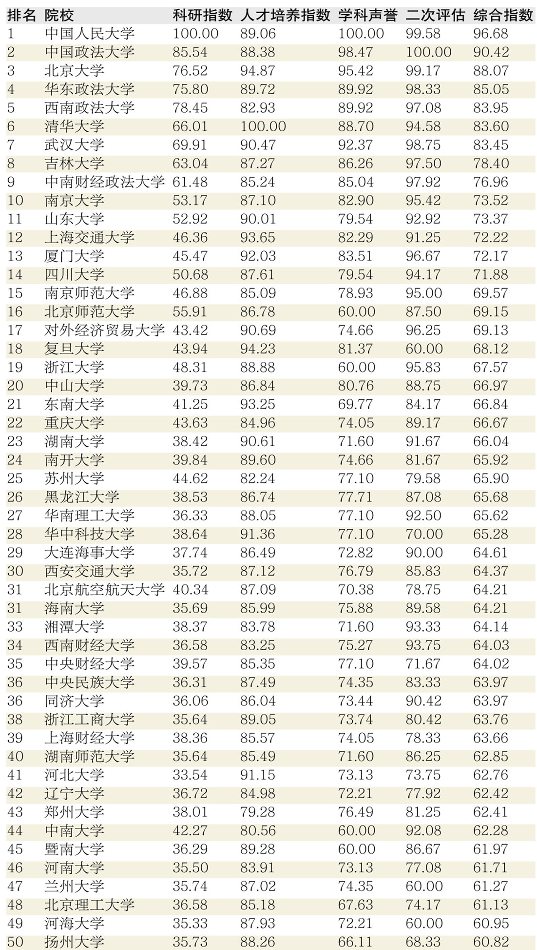 法学学科排名