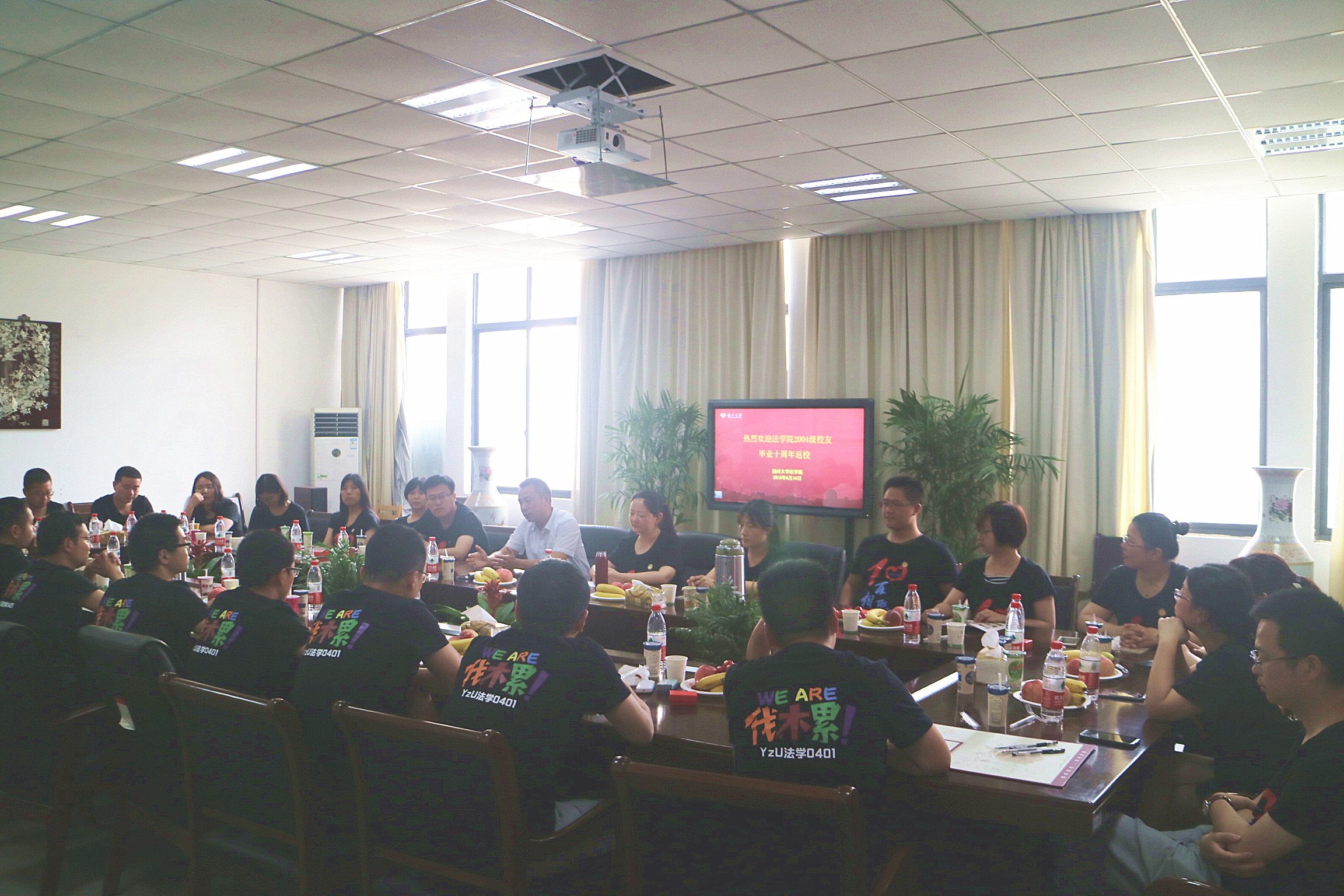 6月16日-6月17日,2004级法学(二)的校友返校。16日下午,院党委副书记花瑞锋、教师代表曾凡燕老师与返校校友在学院会议室举行师生茶话会。