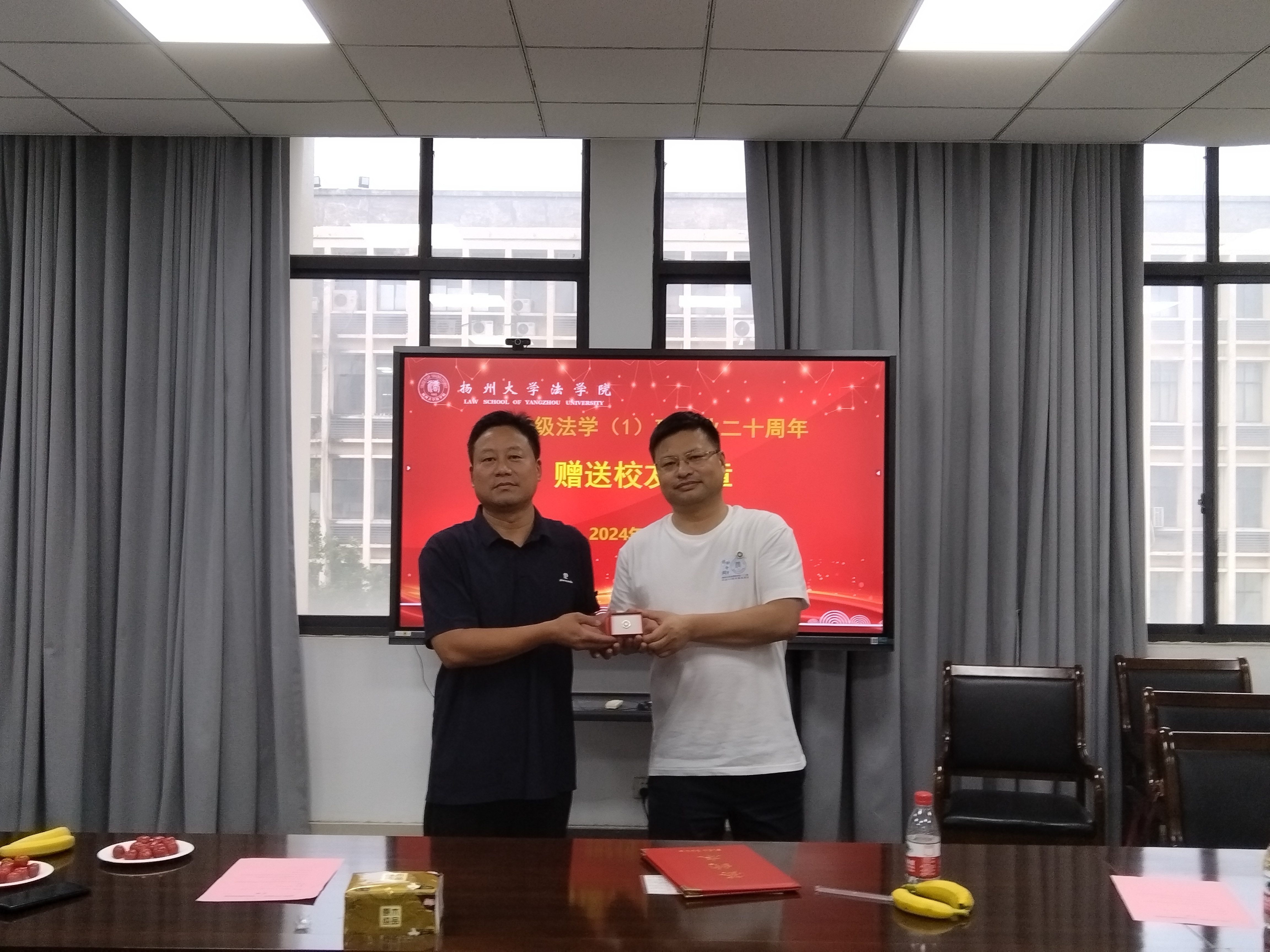 院党委书记花瑞锋代表学院接受校友对法学院发展基金的捐赠,祝愿法学院发展再上新台阶,再创新辉煌。
