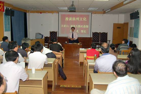 扬州有深厚的历史文化底蕴,为使扬大人了解熟悉自己的居住城市,6月11日,法学院工会、教工支部邀请扬州八怪纪念馆刘春元馆长来院为教职工、研究生举办学术讲座:“漫谈扬州文化”,并于讲座后参观了扬州八怪纪念馆。