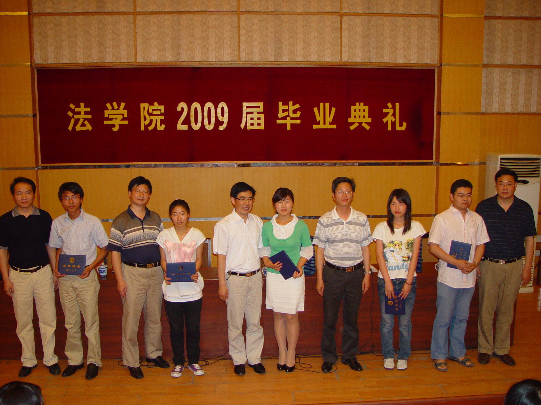 2009年6月23日上午9:00,我院2009届学生毕业典礼在荷花池校区二楼多功能厅隆重举行。院党委顾瑞漒书记、院长焦富民教授、副院长钱玉林教授、蔡宝刚教授以及部分教师代表、2009届全体硕士毕业生和本科毕业生出席毕业典礼。法学院院长焦富民教授首先致辞,对学有所成、即将告别母校踏上新的人生征程的5名硕士研究生及163名本科毕业生表示了热烈的祝贺和衷心的祝福,并提出殷切希望。接着,院团委张彦书记宣读了毕业生名单,并由院领导为毕业生颁发了毕业证书。毕业典礼由法学院党委卢彪副书记主持。