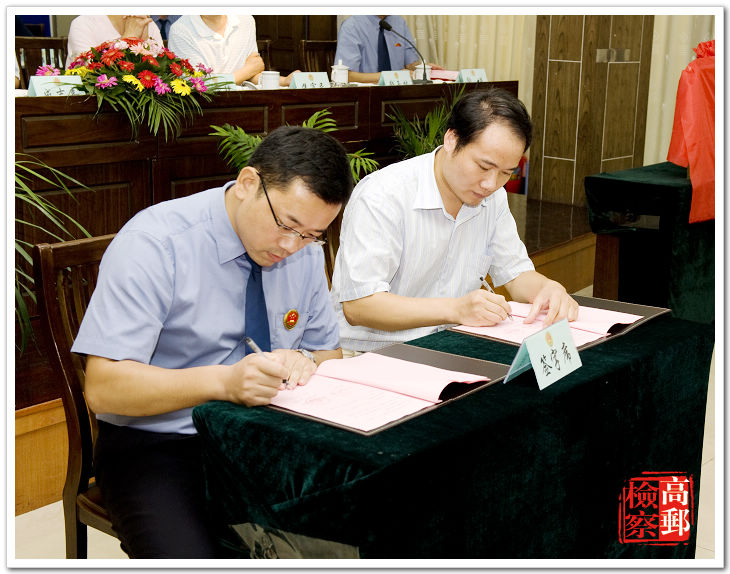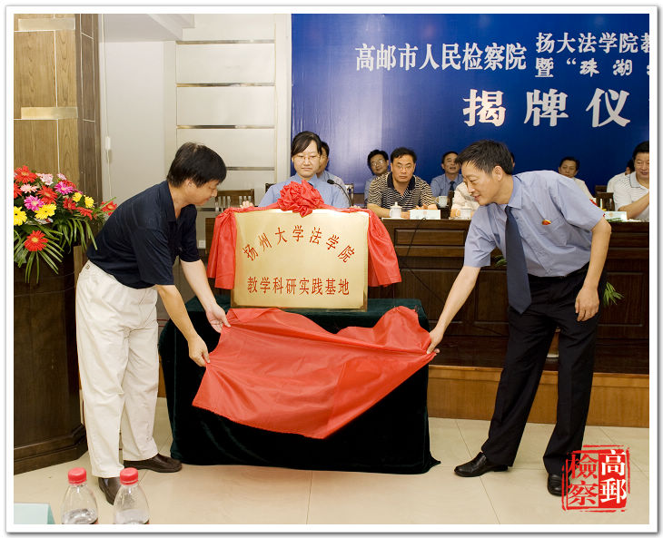 8月19日上午,我院“教学科研实践基地”签字暨揭牌仪式在高邮市人民检察院隆重举行。扬州市检察院有关负责人、高邮市相关部门领导及我院全体院领导出席了仪式。