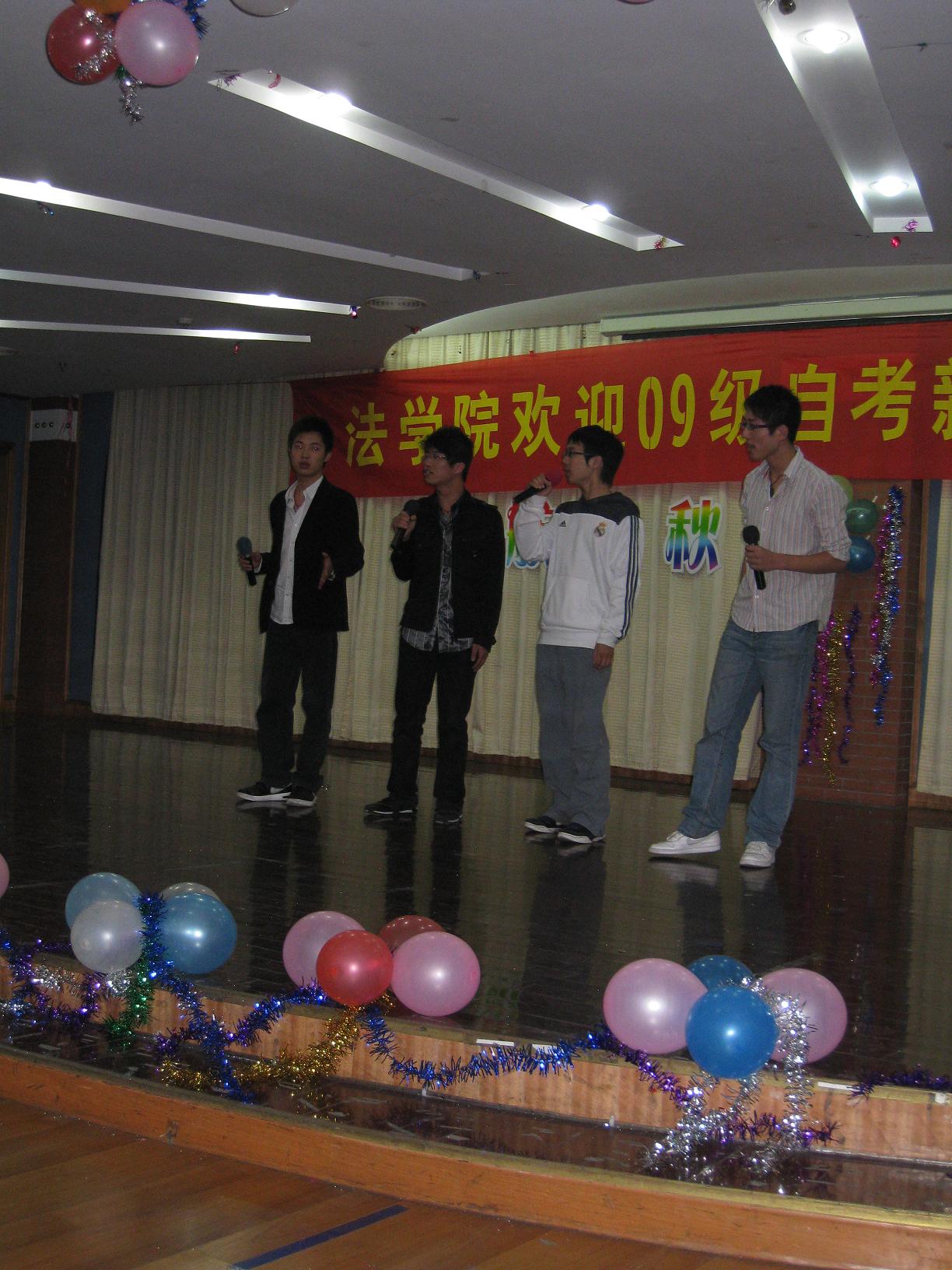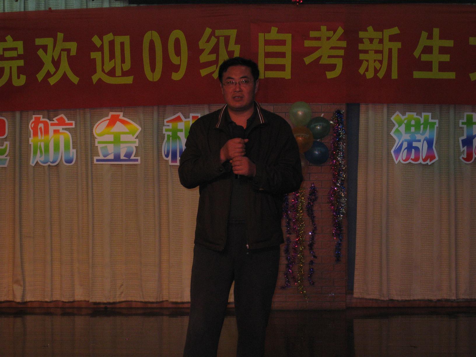 10月20日晚,学院在大学生活动中心多功能厅举办主题为“起航金秋,激扬岁月”的自考迎新晚会。晚会节目内容丰富多彩,同学们用歌舞、相声等曲艺节目表达了对2009级自考新同学的热烈欢迎和良好祝愿,蔡宝刚副院长出席晚会并讲话。