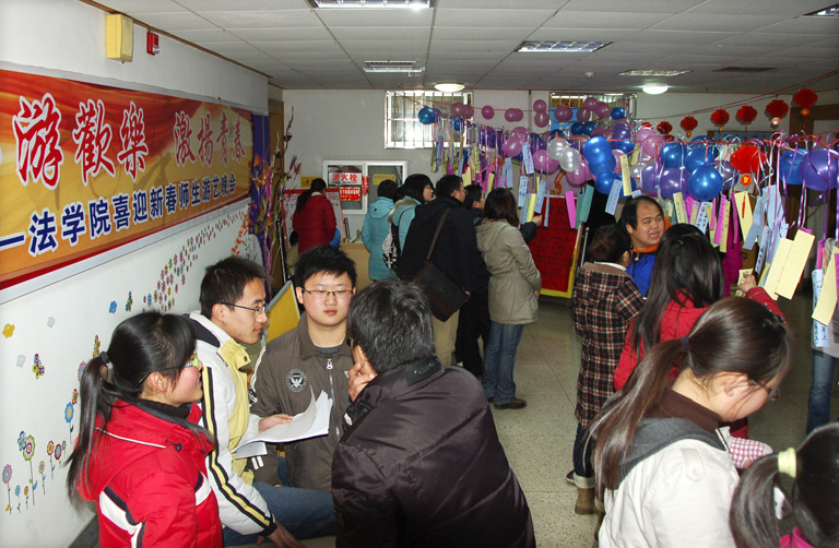 12月30日晚,法学院迎新年师生游艺晚会在教学楼八楼隆重举行。晚会节目精彩纷呈,歌舞、游戏、比赛、义卖等,使晚会欢声如潮,师生在欢乐祥和的氛围中共同迎接新年的到来。学院全体领导出席了晚会,焦富民院长向师生致辞,共同祝愿法学院的明天更加美好。