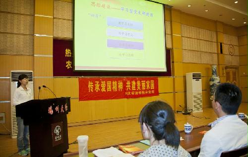 学生第一党支部支委束冬梅作支部工作交流
