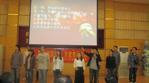 中国梦连着家园情。中华民族坎坷追梦的历程里,烙下了个体和家园的生命印记,对家园的依恋和热爱,与民族的伟大梦想息息相通。今晚,律苑学子们以最充沛的热情和最嘹亮的心声咏唱“家园情”,共话“中国梦”。来自院分党校第二十二期入党积极分子培训班全体学员和学生党员代表们表演了精彩纷呈的节目。