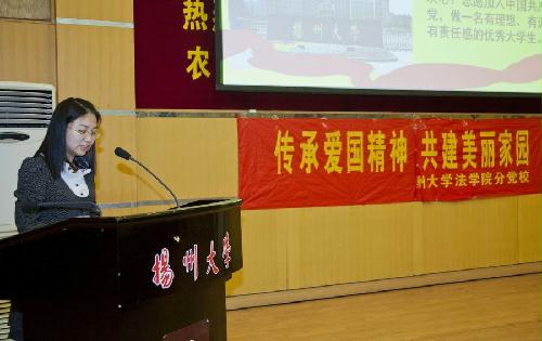 研究生10级第三党支部书记徐佳发言