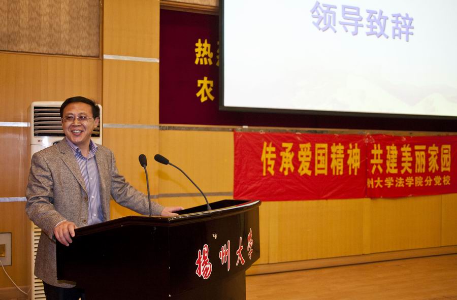 在本篇的最后,扬州大学党委宣传部部长薛小平老师殷切致辞,从三个方面高度评价了本次主题教育活动:一、从主题鲜明性、形式丰富性、内容针对性谈了对本次活动的总体印象;二、回顾了“中国梦”提出的时代背景,强调了“必须坚定地走中国道路、必须弘扬中国精神、必须凝聚中国力量”与同学们分享了“现在的青春是用来奋斗的,将来的青春是用来回忆的”个人感受;三、对全体同学提出希望:1、做一个无愧于母校的扬大人;2、做一个无愧于良知的法律人;3、做一个无愧于时代的中国人。最后以扬州大学的校歌结尾,对学生们予以祝愿。