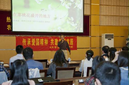 扬州大学老干部艺术团团长谈锦封老师《在那桃花盛开的地方》表达了浓浓的家园情和对青年学子的殷切祝福,动听的歌声打动了在场的每一个人。由钱玉林书记以及本期分党校培训班全体研究生学员为大家带来的《我的中国心》引起了现场全体师生的强烈共鸣!