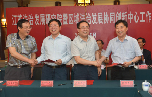 区域法治发展协同创新中心是由我校和南京师范大学、东南大学、江苏省社会科学院共同设立,与5年前成立的江苏法治发展研究院一体化运作,以进一步凝聚江苏法学研究的整体合力。中心下设区域立法发展研究平台、区域行政法治研究平台、区域法治文化研究平台、区域司法发展研究平台、区域涉外经济法制研究平台等五个研究平台。