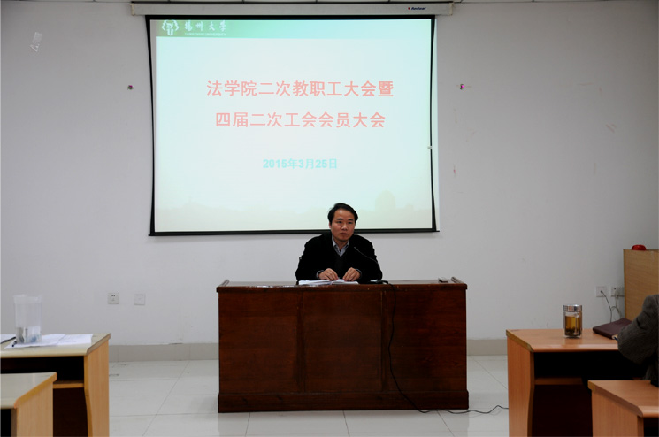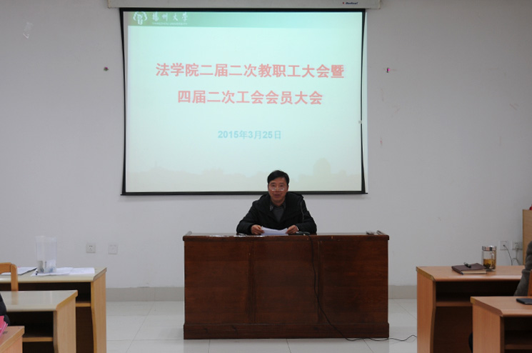 3月25日下午,我院在笃行楼N324教室召开二届二次教职工大会暨四届二次工会会员大会,全体教职工参加了本次会议。会上,院长钱玉林作了学院工作报告,院工会主席邓兴明作了工会工作报告,同时向全体教职工征求了有关学院建设发展建议。院党委书记孙鹏在会上发表讲话并提出要求,希望大家在全面深化改革、依法治国的大背景下,抓住机遇,二次创业,齐心协力,全面推进学院发展的新跨越!