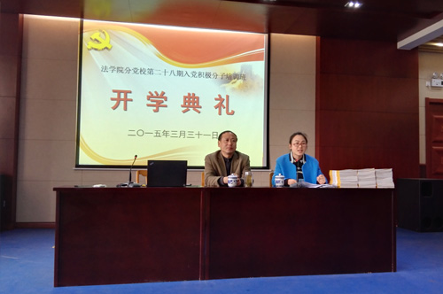 3月31日下午,我院分党校第二十八期入党积极分子培训班开学典礼,在我校扬子津校区笃行楼二楼模拟法庭隆重举行。开学典礼由培训班班主任、院组织员陈爱玲老师主持,院党委书记、分党校校长孙鹏老师出席典礼并致辞,59名新学员在活动中接受了精神的洗礼。
