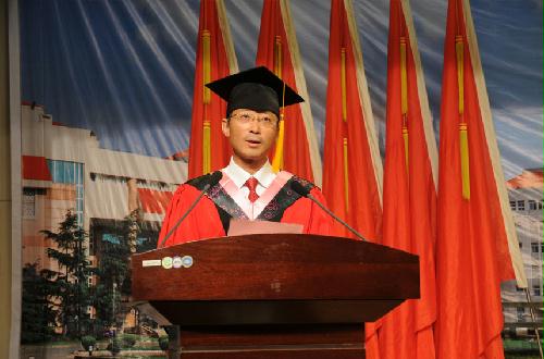 随后,学位授予仪式开始,院长钱玉林首先宣读了学位授予决定。在接下来庄严肃穆的拨流苏仪式中,副校长陈永平、教务处长张清以及钱玉林共同为所有毕业生拨流苏。流苏从右边拨到左边的那一刻,象征着同学们学业的顺利结束,更鞭策着同学们要不断充实自我,坚实地走向未来。