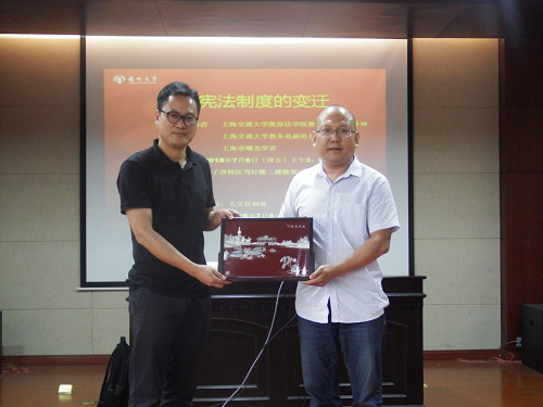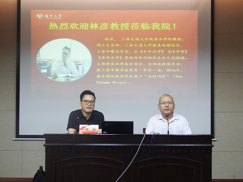 2018年7月6日下午三点,上海交通大学凯原法学院教授、博士生导师,上海交通大学教务处副处长林彦教授在我院模拟法庭作了主题为“我国宪法制度的变迁”的学术报告。