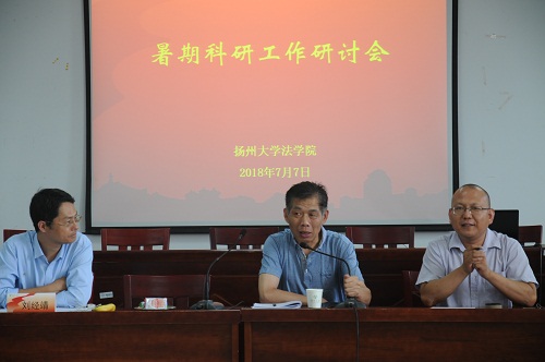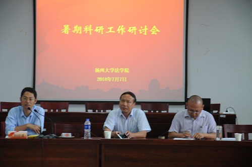 2018年7月7日下午,我院在笃行楼三楼模拟法庭召开了全院教职工科研工作研讨会。烟台大学法学院副院长(主持工作)刘经靖教授、扬州大学人文社科处处长秦兴方教授应邀参加,院党委书记孙鹏,副院长李云波以及学院教职工40余人出席会议。