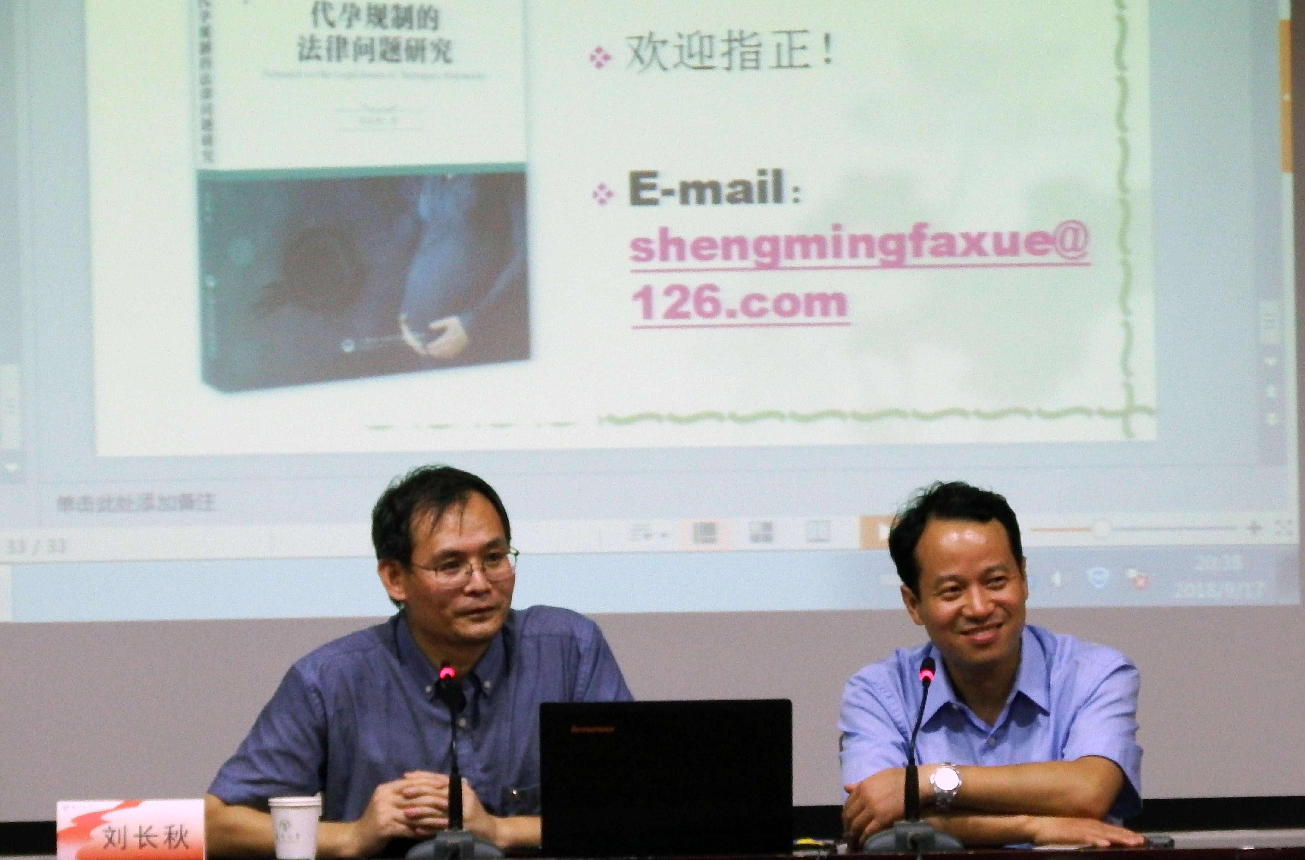 2018年9月17日晚上,应扬州大学法学院邀请,上海社会科学院法学所生命法研究中心主任、宪政与行政法室主任、上海市法学会生命法研究会副会长(兼任)刘长秋研究员在法学院模拟法庭作了题为“代孕规制:中国的立场选择与未来立法方向”的学术报告。此次报告为“盛望法治论坛”系列讲座之一,由法学院王承堂院长主持,法学院部分教师、青年律师、研究生、本科生等200余人聆听了报告。