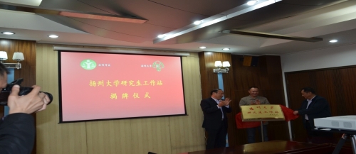 扬州大学法学院党委书记孙鹏、扬州市仲裁委秘书长朱愈明和扬州大学研究生院副院长吉丹如共同为研究生工作站揭牌。