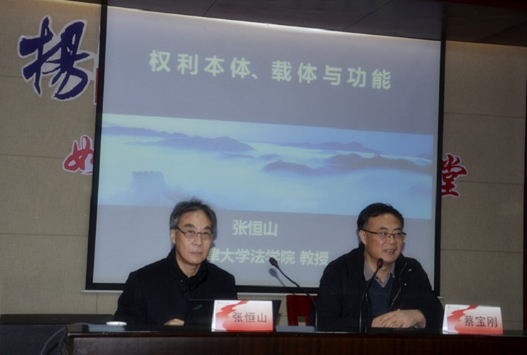 2020年1月7日下午,天津大学法学院卓越教授、博士生导师张恒山教授应邀莅临我院作了题为“权利本体、载体与功能”的学术报告。本次讲座由扬州大学人文社科处、扬州大学法学院、扬州大学广陵学院与江苏盛望律师事务所联合举办,蔡宝刚院长主持,法学院部分教师、本科生、研究生及盛望律师事务所青年律师近100人聆听了此次报告。