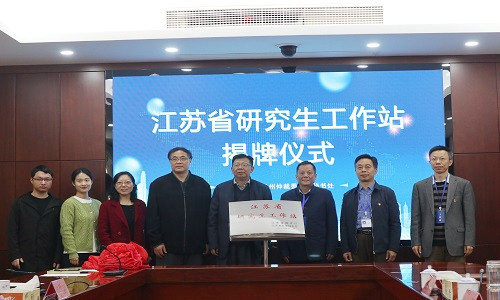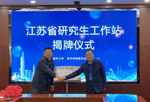 在热烈的掌声中,扬州大学洪涛副校长与扬州仲裁委员会副主任、秘书处朱愈明秘书长共同为“江苏省研究生工作站”揭牌。与会各位领导和代表一起合影留念。