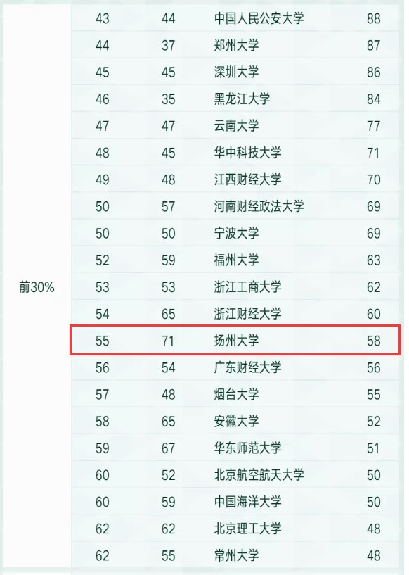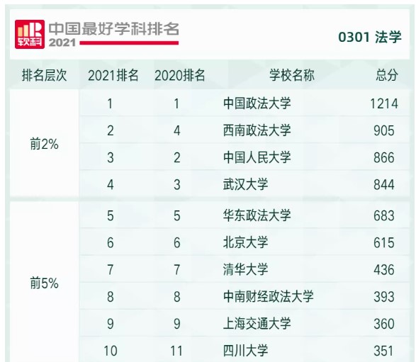 2021年10月25日,高等教育评价专业机构软科正式发布“2021软科中国最好学科排名”。排名榜单包括96个一级学科,共有486所高校的4992个学科点上榜。今年法学学科排名共有109所大学上榜。扬州大学法学学科排名第55名,位居前30%层次,排名大幅提升。 近年来,法学院秉承“德法兼融、知行合一”的办学理念,坚持以学科建设为龙头,以教学科研为主体,以师资建设为重点,以教书育人为根本,人才培养质量稳步提高,形成明显学科优势和办学特色,已成为我国法学人才培养的重要基地之一。