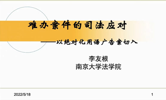 讲座伊始,李友根教授首先以杭州方林富炒货店绝对化用语广告处罚案为视角引出了严格依法处罚与裁判效果、社会舆论之间的紧张关系。随后,李教授重点从难办案件的界定、我国司法实践中对难办案件的既有处理、难办案件司法应对的纯理论探讨三个方面做了深刻的分析。