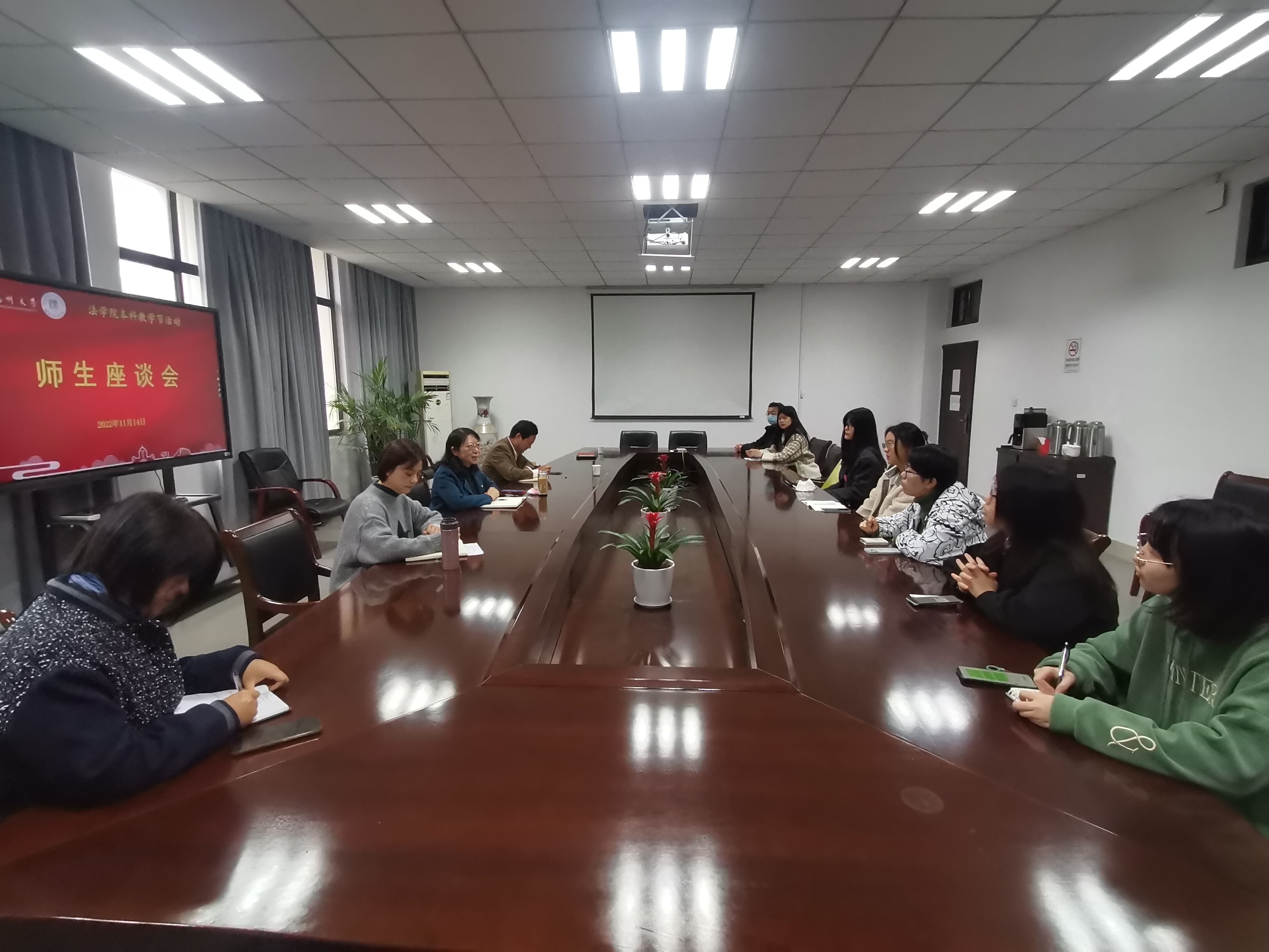 11月14日,学院召开本科生师生座谈会,副院长(主持工作)曲昇霞、党委副书记黄文婷、副院长高永明及全体本科生班学习委员参加了本次座谈会。