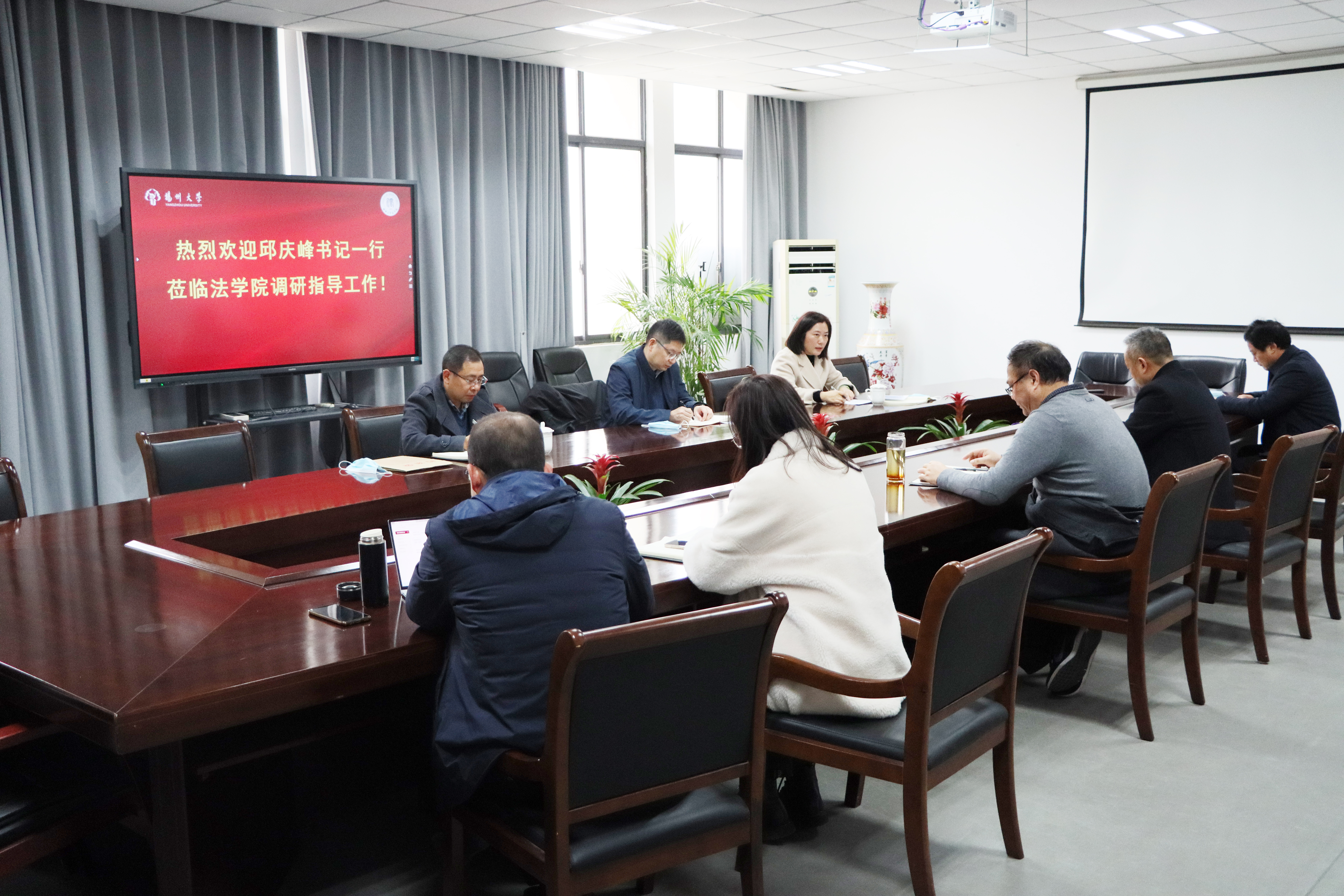 邱庆峰重点听取了法学院与扬州市纪委监委合作共建的扬州市反腐倡廉制度建设研究所的工作汇报,并从创新组织形式、拓展合作方式、加强平台建设、拓展研究资源等方面对扬州市反腐倡廉制度建设研究所和学院纪检监察专业学科建设提出了指导意见。他指出,廉政法治、纪检监察工作是党和国家工作重要组成部分,意义十分重大,要加强扬州市反腐倡廉制度建设研究所各项工作,集聚研究力量,拓展校地合作空间,发挥研究所在人才培养、理论研究、决策咨询等功能;他希望,法学院能够利用好前期在廉政法治理论方面取得的成果,强化廉政法治和纪检监察的专业和学科建设。