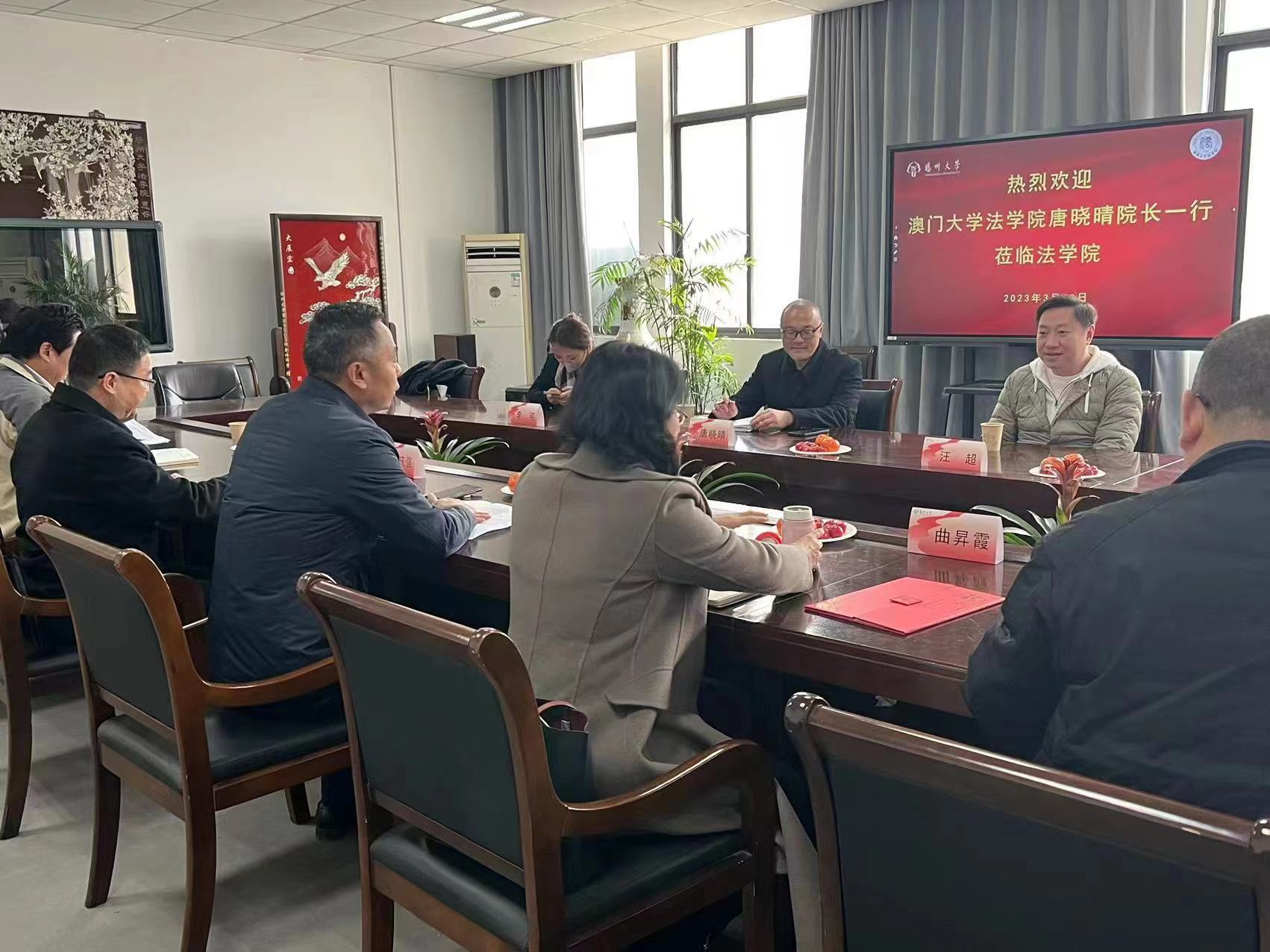3月18日,澳门大学法学院院长唐晓晴教授等一行三人到访我院,并与我院署交流合作协议。党委书记花瑞锋、院长曲昇霞、副院长高永明、国际合作与交流处李庆强等出席签约仪式。