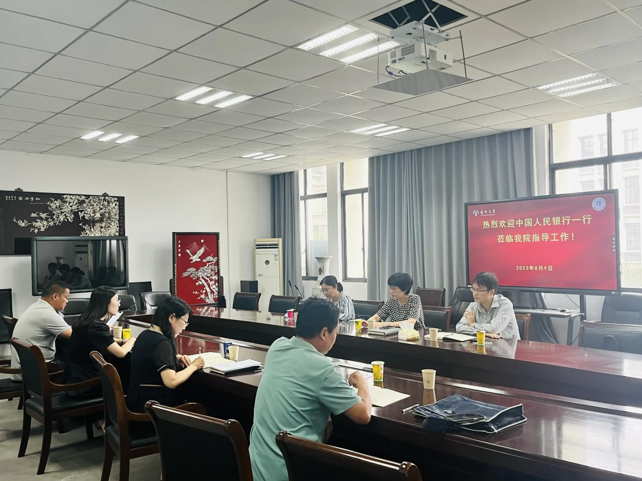 8月9日,中国人民银行扬州分行副行长何飞一行来我院洽谈反洗钱金融犯罪宣传与研究基地合作事宜。学院副院长曲昇霞(主持工作)、副院长高永明、王焕婷、贾长森等老师参加洽谈。