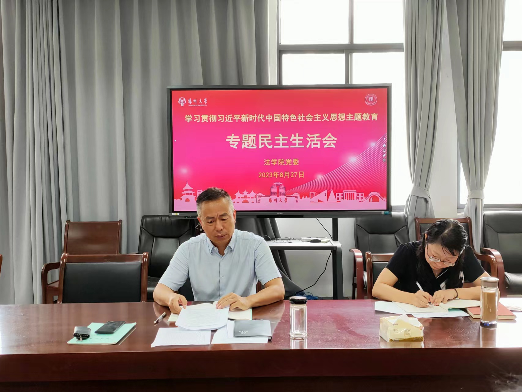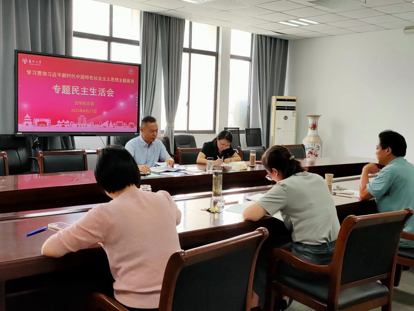 2023年8月27日下午,学院党委在笃行楼N313会议室召开学习贯彻习近平新时代中国特色社会主义思想主题教育专题民主生活会。学院领导班子成员参加会议,会议由院党委书记花瑞锋主持。