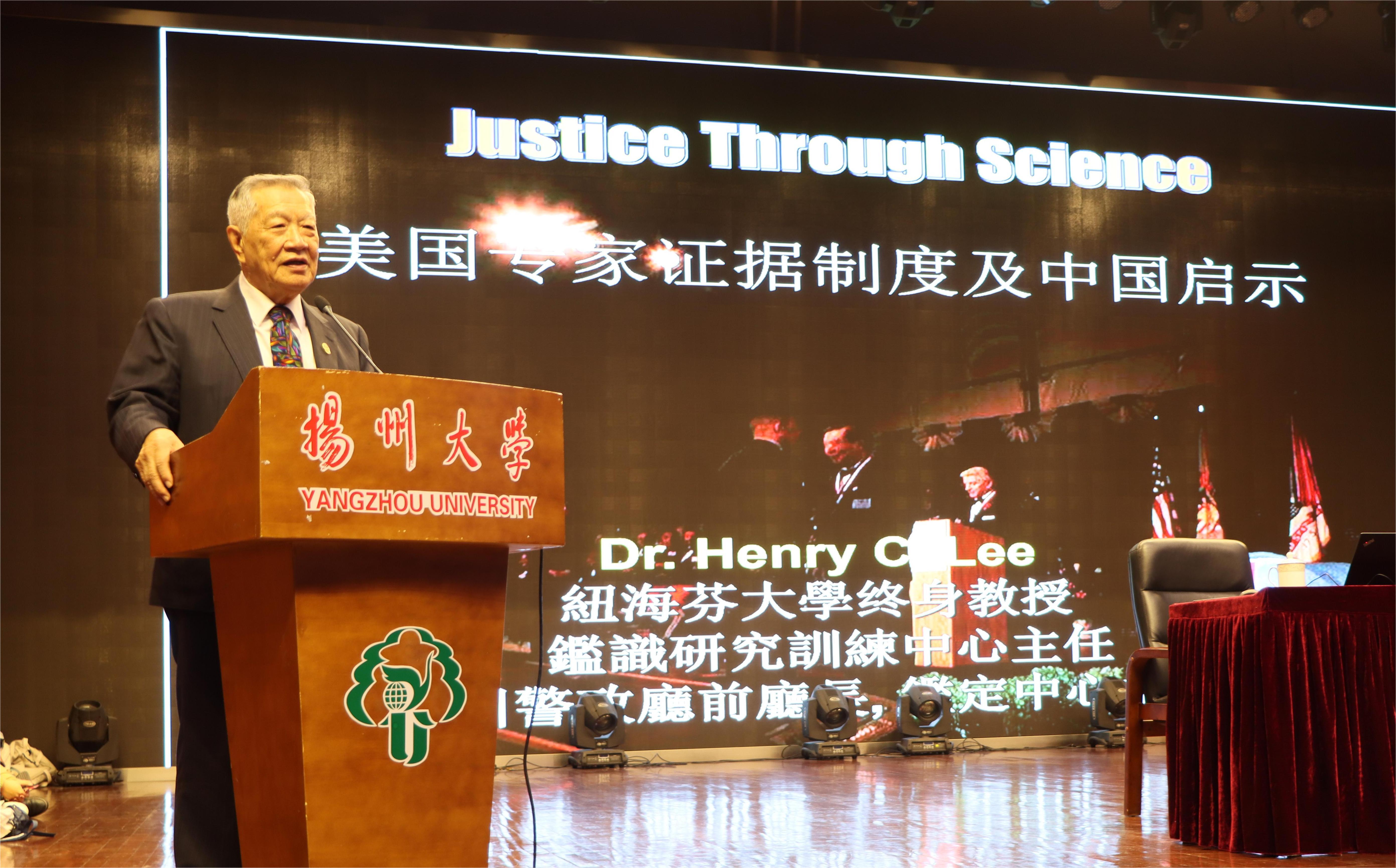2023年12月4日,纽黑文大学终身教授、世界著名刑事鉴识专家李昌钰博士携团队莅临扬州大学扬子津校区文体馆小剧场,以“美国专家证据制度及中国启示”为题开展讲座。本次活动由扬州大学国际处、社科处、教务处、法学院、法治社会研究院、广陵学院主办,江苏盛望律师事务所协办。扬州大学校党委常委、纪委书记邱庆峰、国际处处长张吟、副处长缪海涛,法学院院领导班子等出席本次讲座,本次讲座由张清教授主持。