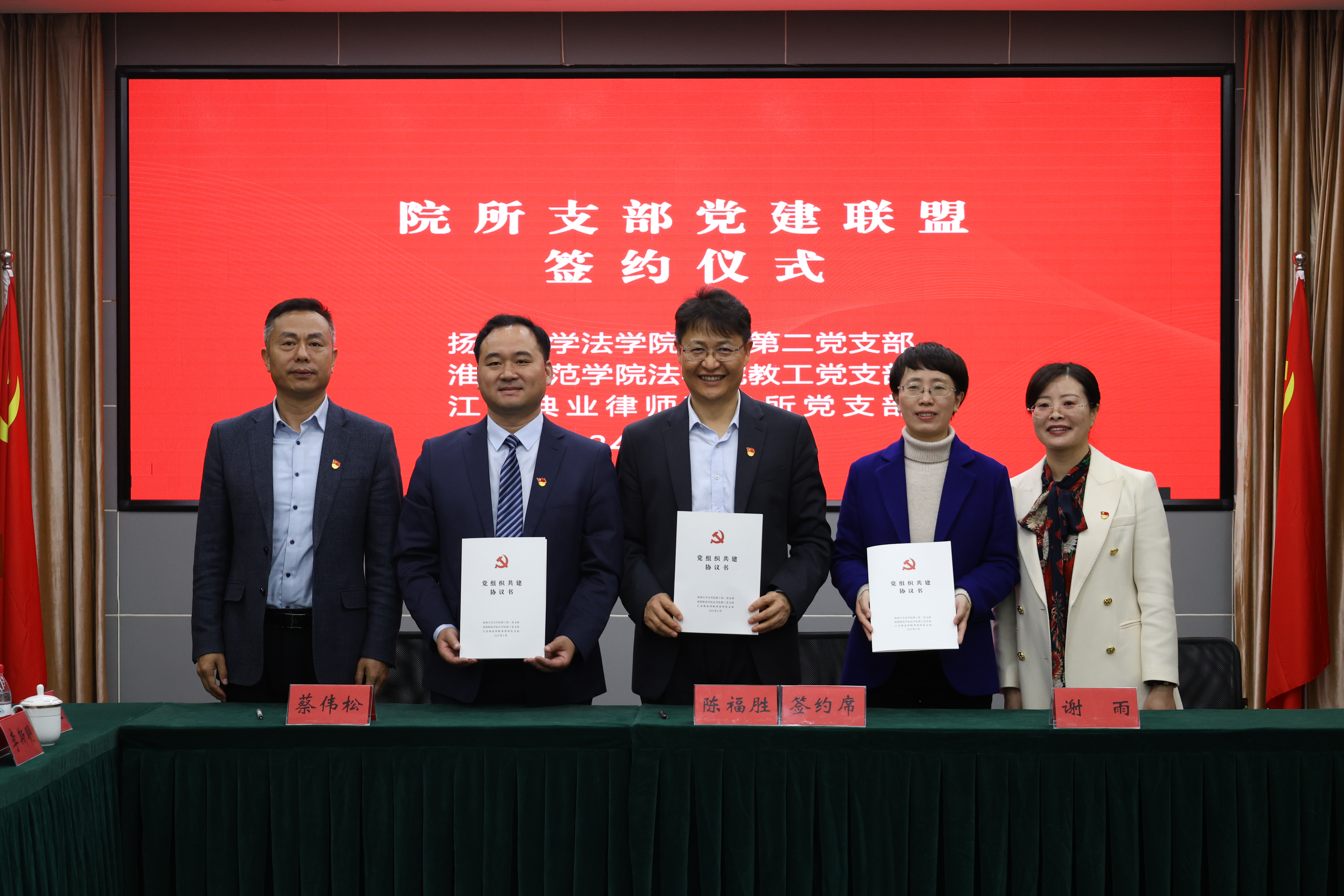 为进一步加强沟通与协作,凝聚法学院校与法律实务部门党建工作合力,积极推进新时代高素质法治人才培养,我院教工第二党支部与淮阴师范学院法学院教工党支部、江苏典业律师事务所党支部共同签订党建联盟协议,打造“资源共享,优势互补,共驻共建,凝聚力量”的党建联盟。