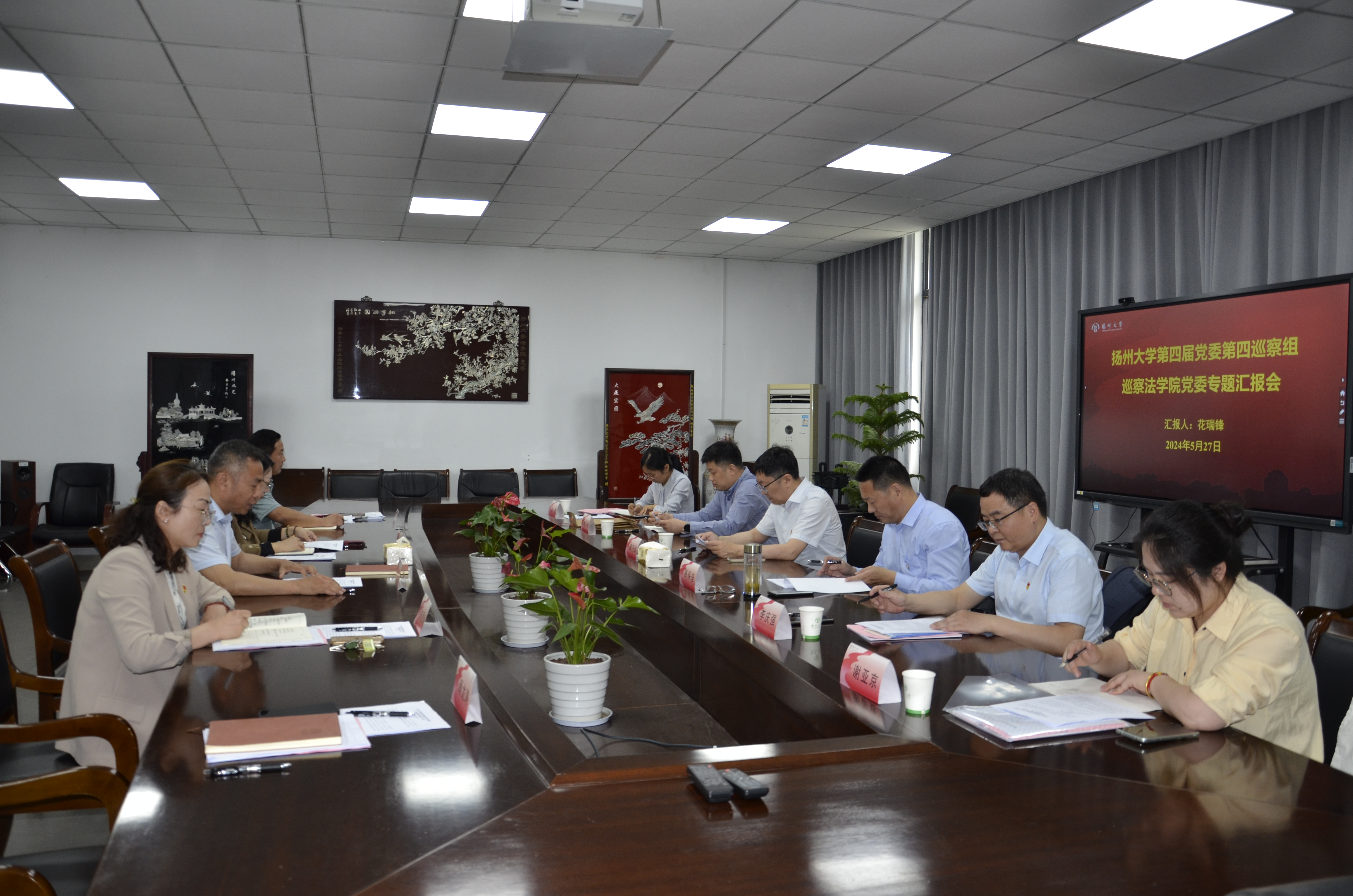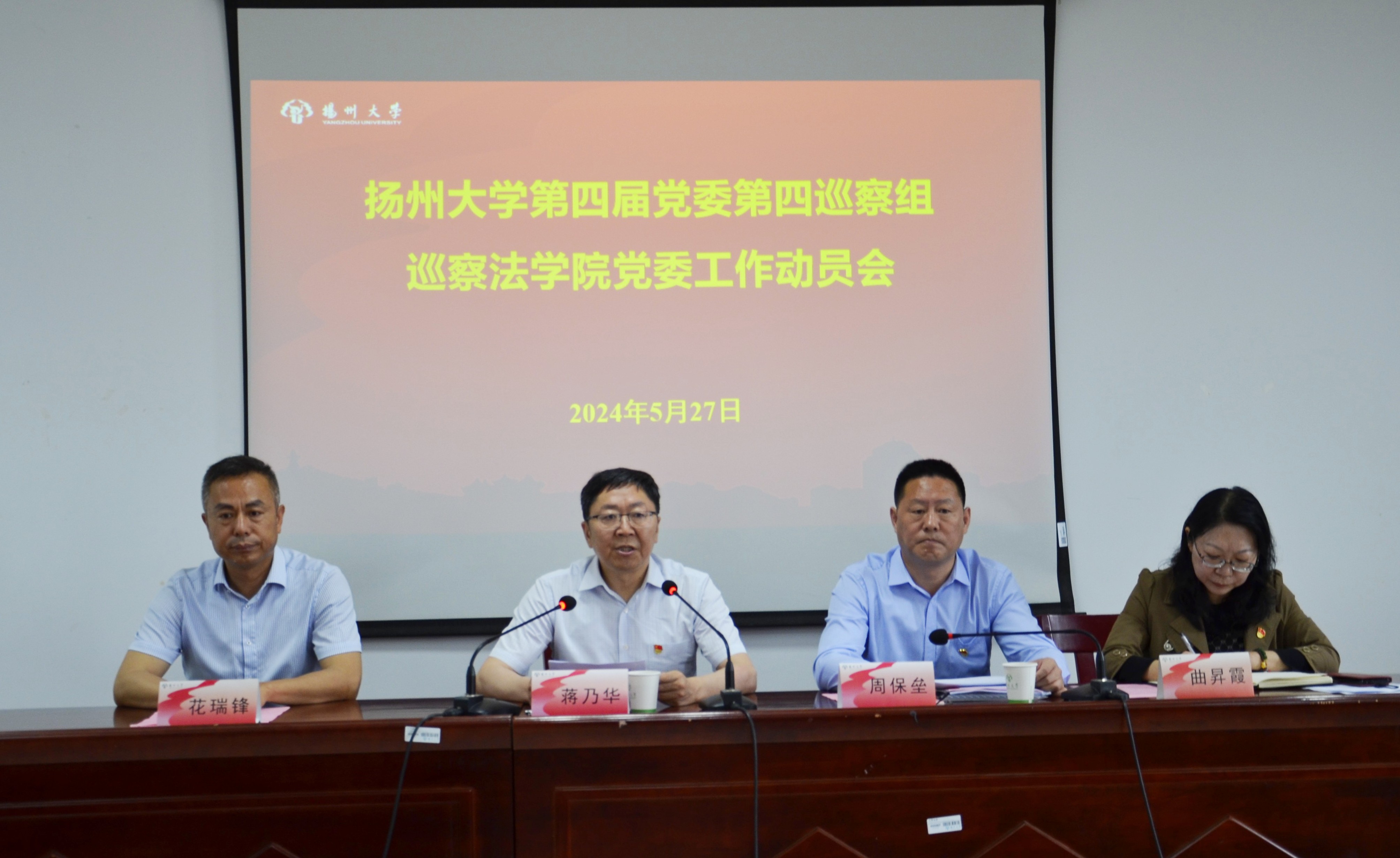 5月27日上午,扬州大学第四届党委第三轮校内巡察第四巡察组巡察法学院党委工作动员会在扬子津校区笃行楼三楼N324模拟法庭召开。第四巡察组组长、校党委常委、副校长蒋乃华出席会议并作动员讲话。院党委书记花瑞锋主持会议并作表态发言。