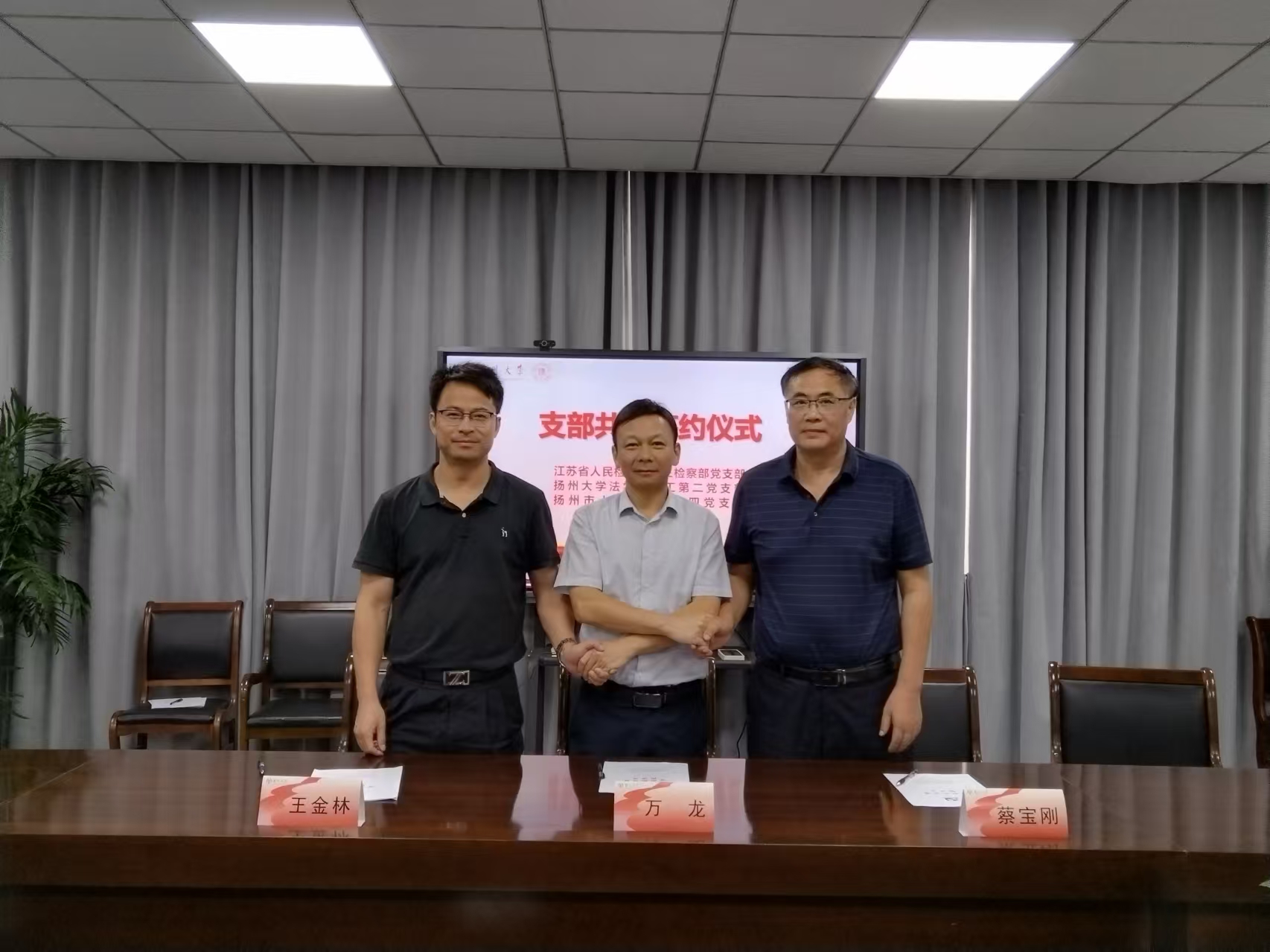 为充分发挥党建引领促发展、组织共建聚合力作用,工作座谈会后,江苏省人民检察院第三检察部党支部、扬州市人民检察院第四党支部、扬州大学法学院教工第一党支部结对共建签约,为三方多渠道、多层次、多形式的开展深度合作,促进基地高质量发展提供了保障。