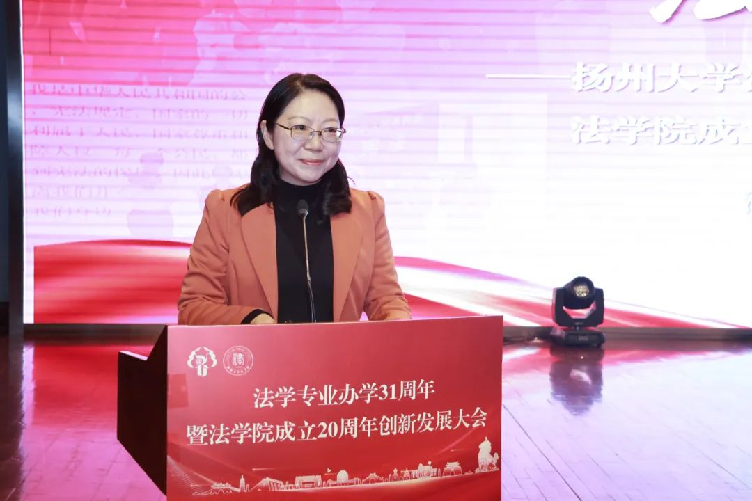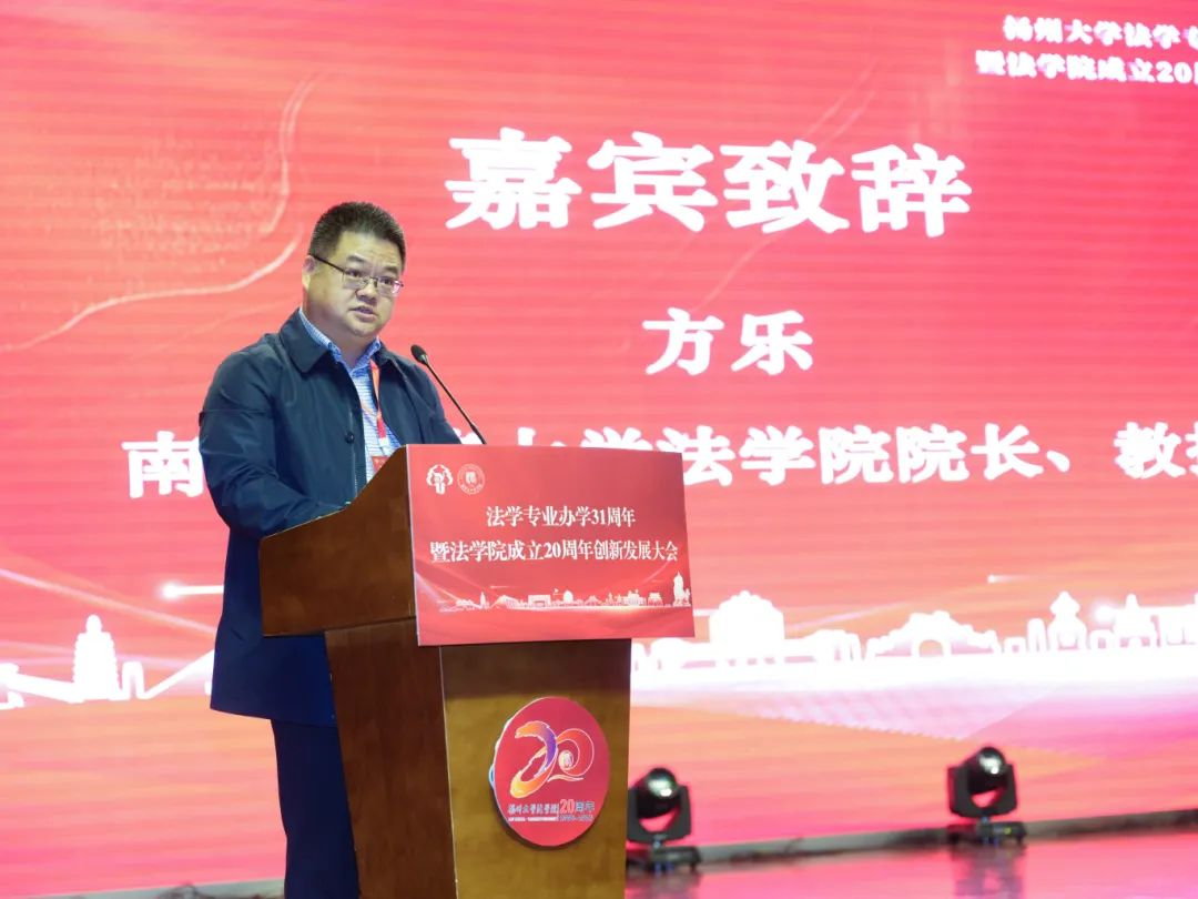 高校代表、南京师范大学法学院院长方乐教授,扬州市中级人民法院党组书记、院长杨晓蓉,教师代表蔡宝刚教授,2022级硕士研究生李佳恺先后致辞祝贺扬州大学法学专业办学31周年暨法学院成立20周年创新发展大会隆重举行。