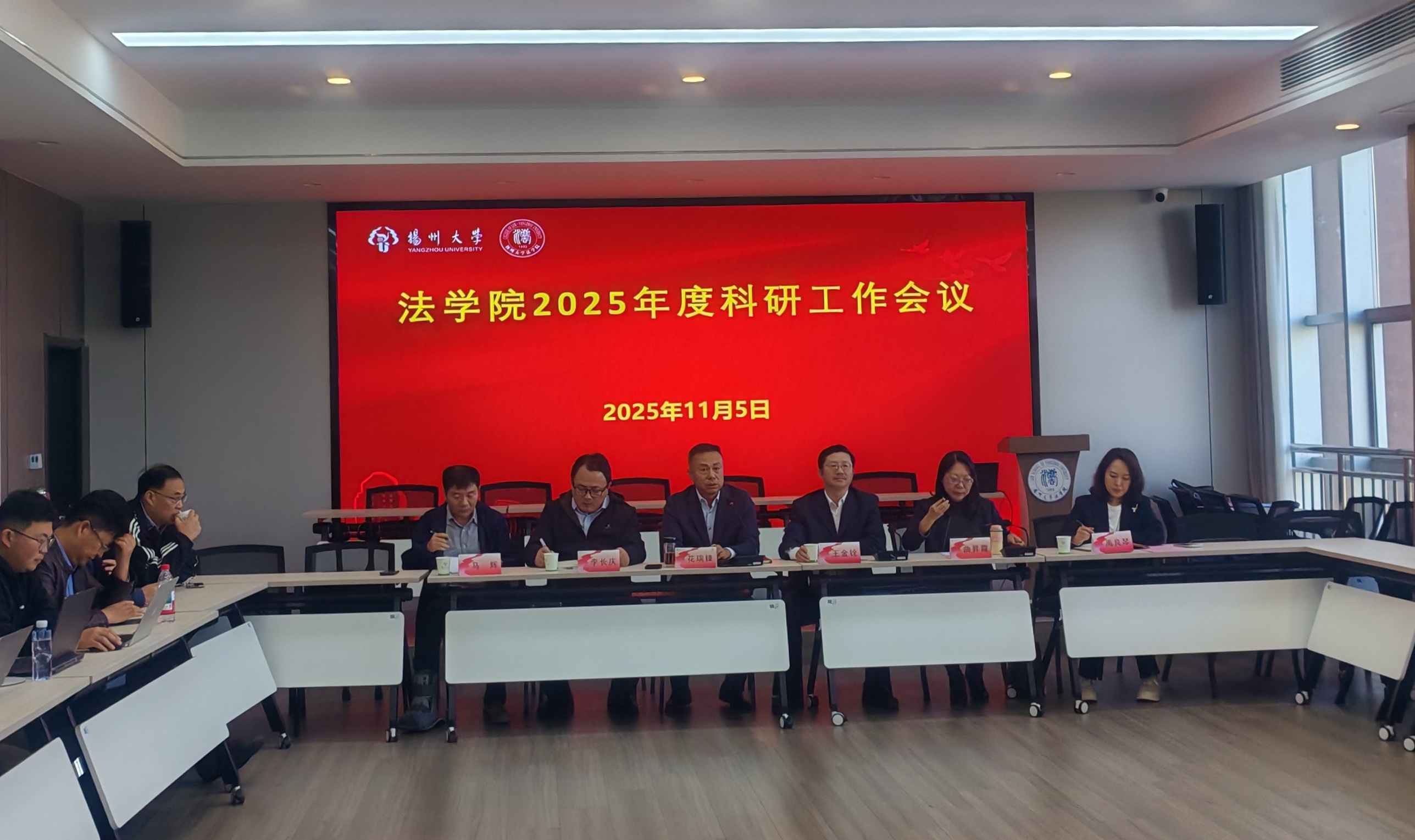 11月5日,我院隆重召开2025年度科研工作会议暨2026年度国家社科基金选题论证与辅导会。会议主题为“总结复盘,精准动员,强化论证,提升质量”。校人文社会科学处处长王金铨、副处长李长庆、禹良琴应邀出席会议,法学院班子成员及全体专任教师参加会议。会议由法学院党委书记花瑞锋和副院长马辉分阶段主持。