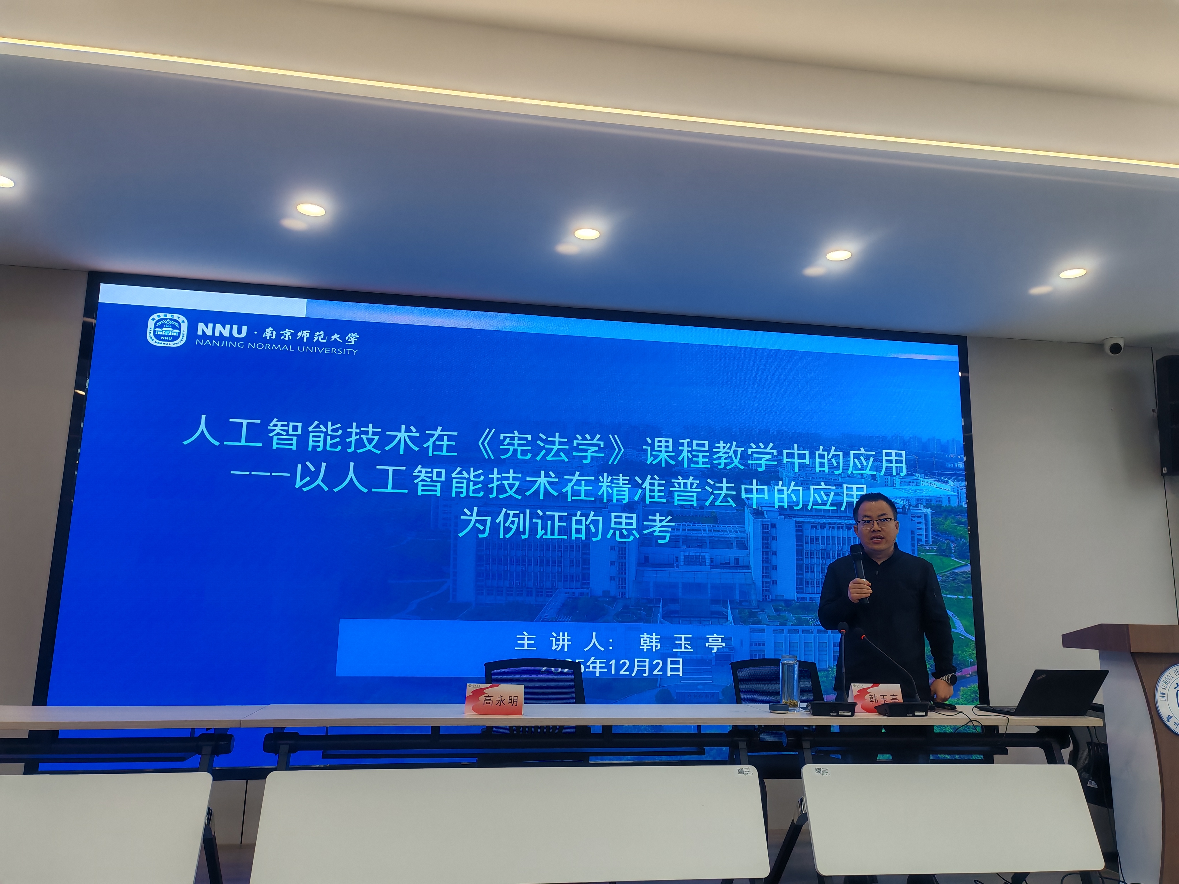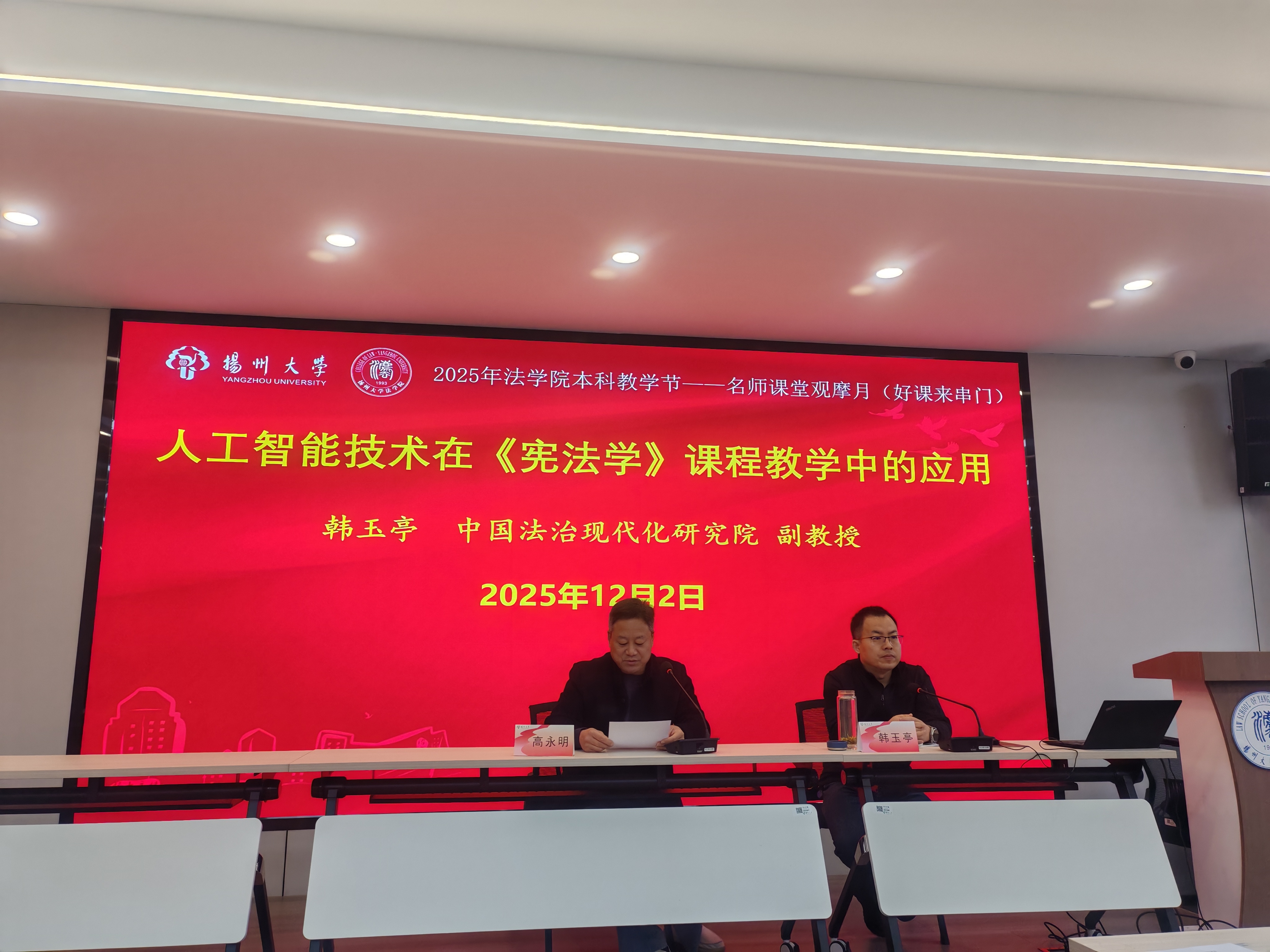 12月2日上午,学院成功举办2025年本科教学节"好课来串门"示范课观摩活动。本次活动特邀南京师范大学法学院韩玉亭副教授,为师生带来题为《人工智能技术在〈宪法学〉课程教学中的应用》的教学示范课。法学院副院长高永明主持活动,百余名师生参与观摩。