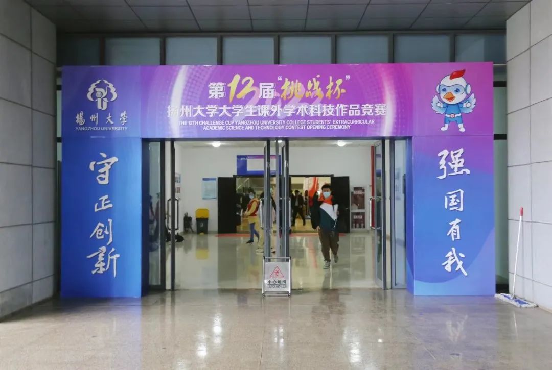 2023年3月22日,扬州大学在扬子津东校区文体馆举行第十二届“挑战杯”大学生课外学术科技作品竞赛终审决赛。校党委书记焦新安、校长丁建宁、校党委副书记周如军及相关师生参与本次活动。