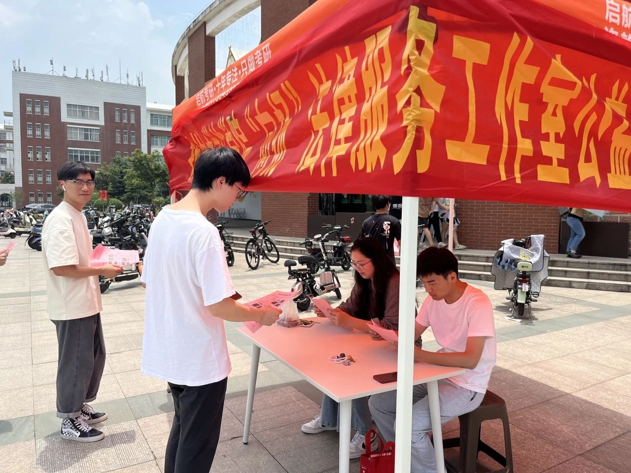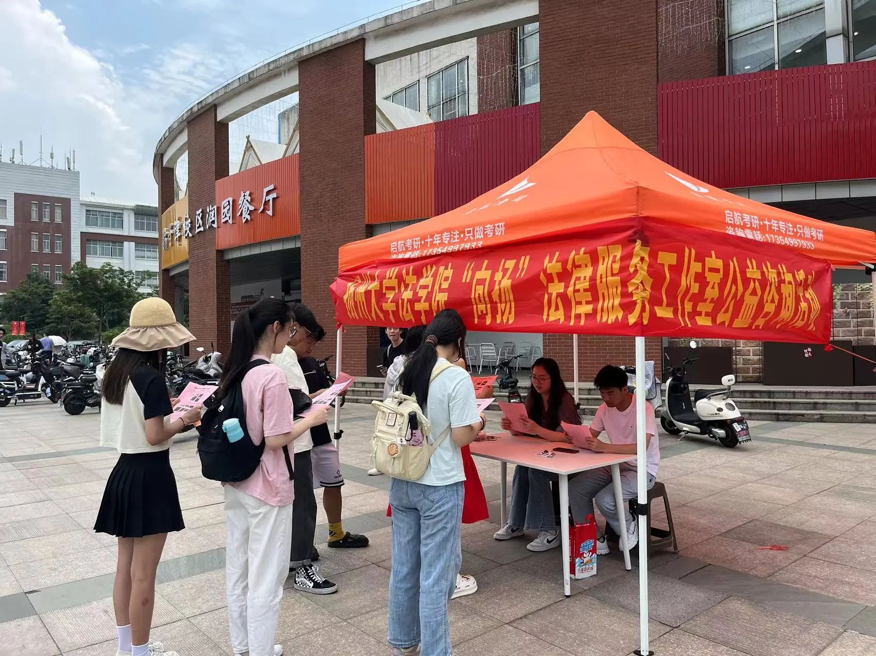 6月21日中午11时许,扬州大学法学院“向扬”法律服务工作室秉持着“德法兼融、知行合一”的理念,在扬子津西校区润园食堂东广场开展了公益法律咨询活动。