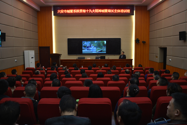 近日,六安市城管局与我院合作举办的六安市城管系统贯彻党的十九大精神城管局长主体培训班在我院圆满完成。本次培训共分为两期,每期6天,来自六安市人大、政协、法制办、财政局、编办、各县区政府相关负责人、中心城区乡镇、街道负责人、市城管局领导班子、局属单位、机关科室以及县区城管局负责人共150余人参加了本次培训。在开班仪式上,我院党委书记孙鹏代表学院做开班致辞,六安市城管局局长郭强和副局长丁以美作为带队领导分别做了动员讲话。