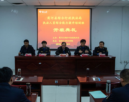 近日,商河县综合行政执法局与我院合作举办的执法人员综合能力提升培训班顺利开班。本次培训共分为两期,每期4天,来自商河县综合行政执法局的100名余名执法干部将参加本次培训。开班仪式上,扬州大学城市管理研究中心主任王毅教授代表学院作开班致辞,商河县综合行政执法局执法大队政委蔡希良作了动员讲话,并对培训的目的、意义和学习纪律做了强调。开班仪式由学院办公室主任张诚主持。