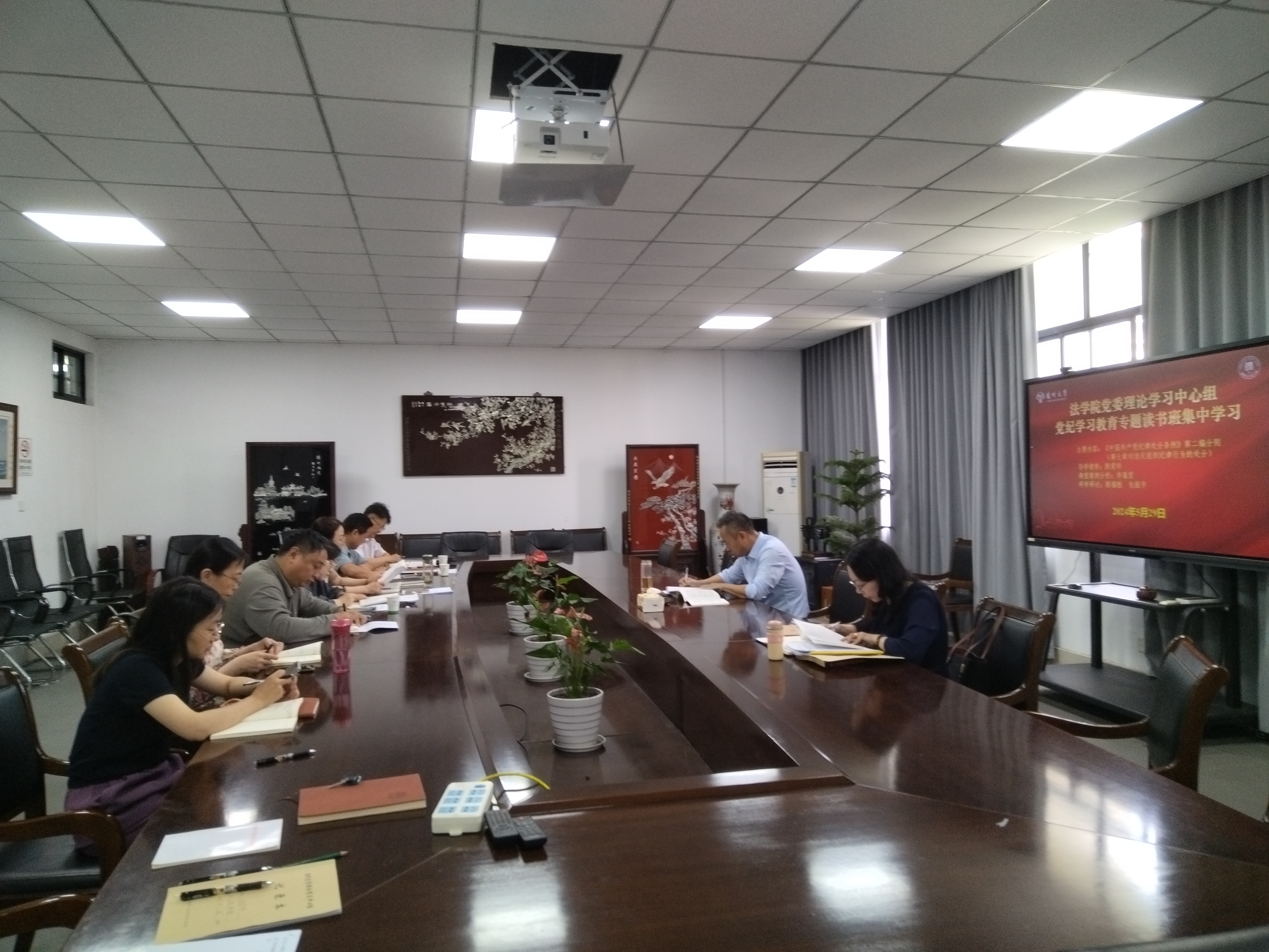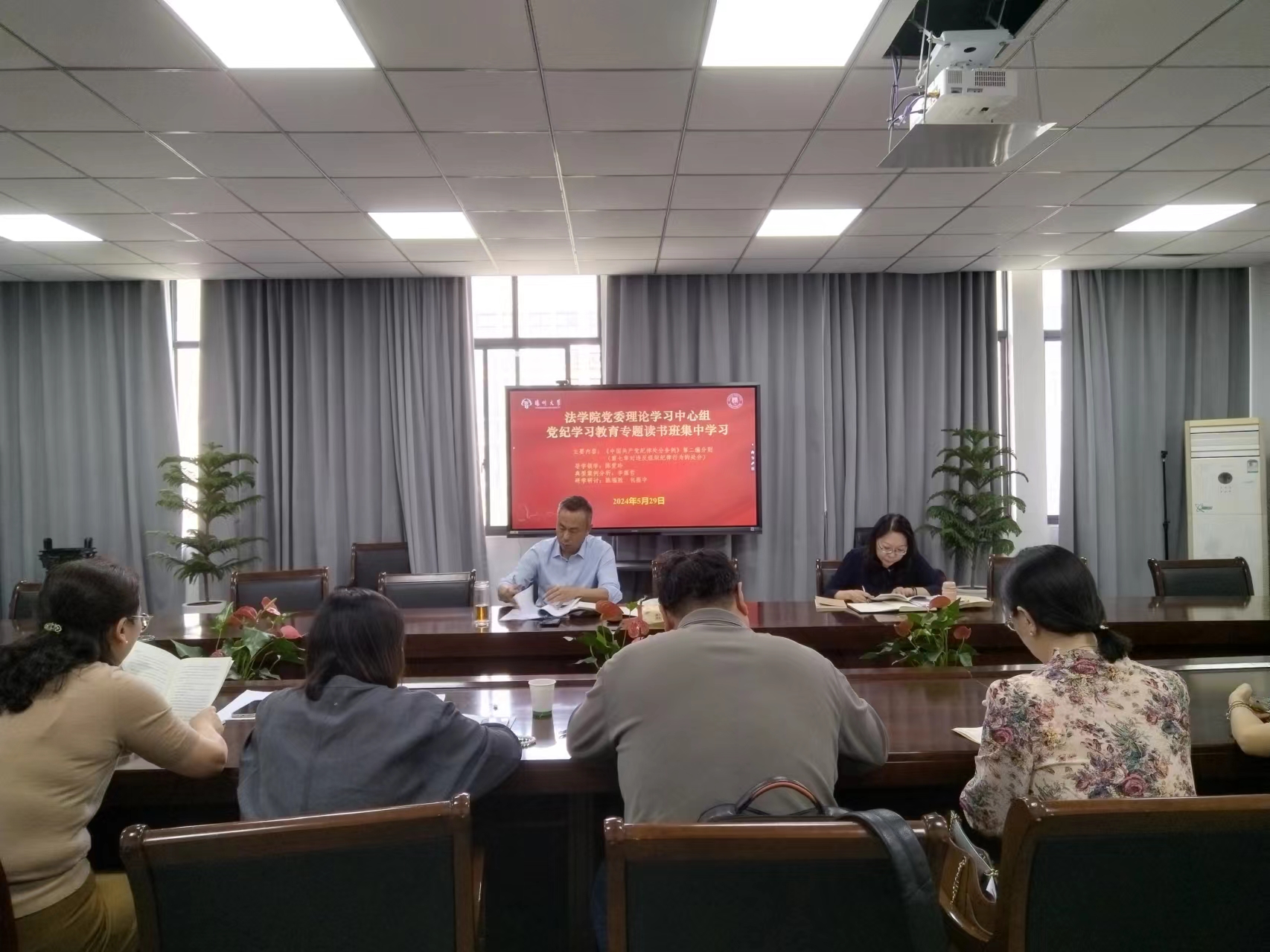 5月29日下午,学院举行党纪学习教育集中专题学习,党委理论学习中心组党纪学习教育读书班全体成员参加了会议。法学院党委书记花瑞锋主持学习会。