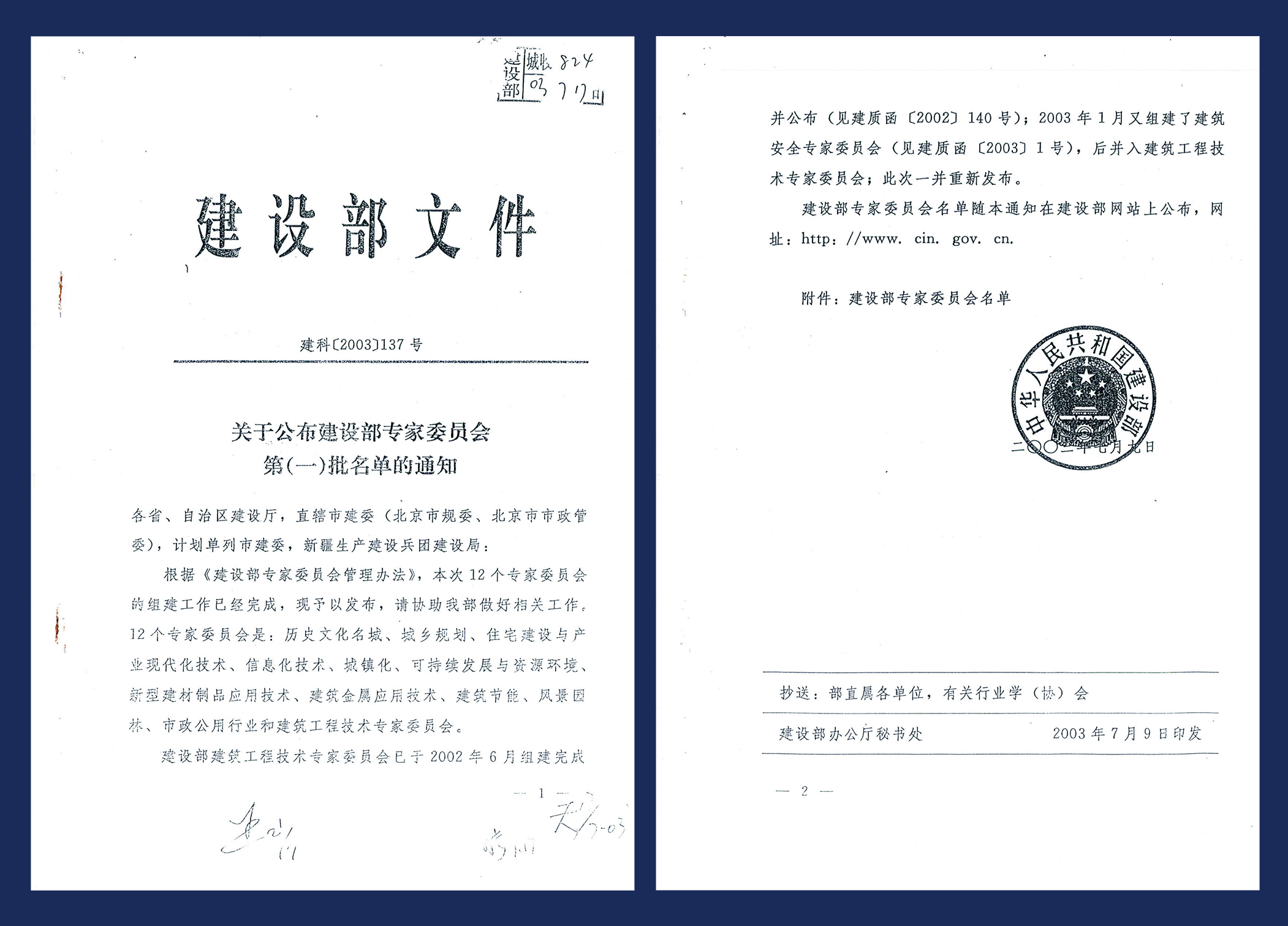 关于公布建设部专家委员会第(一)批名单的通知