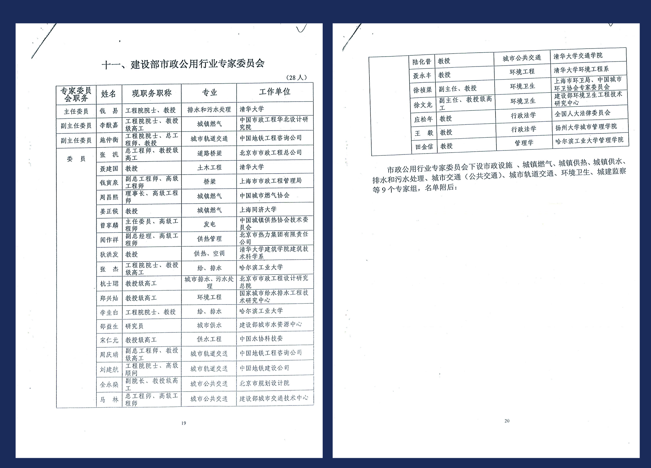建设部市政公用行业专家委员会