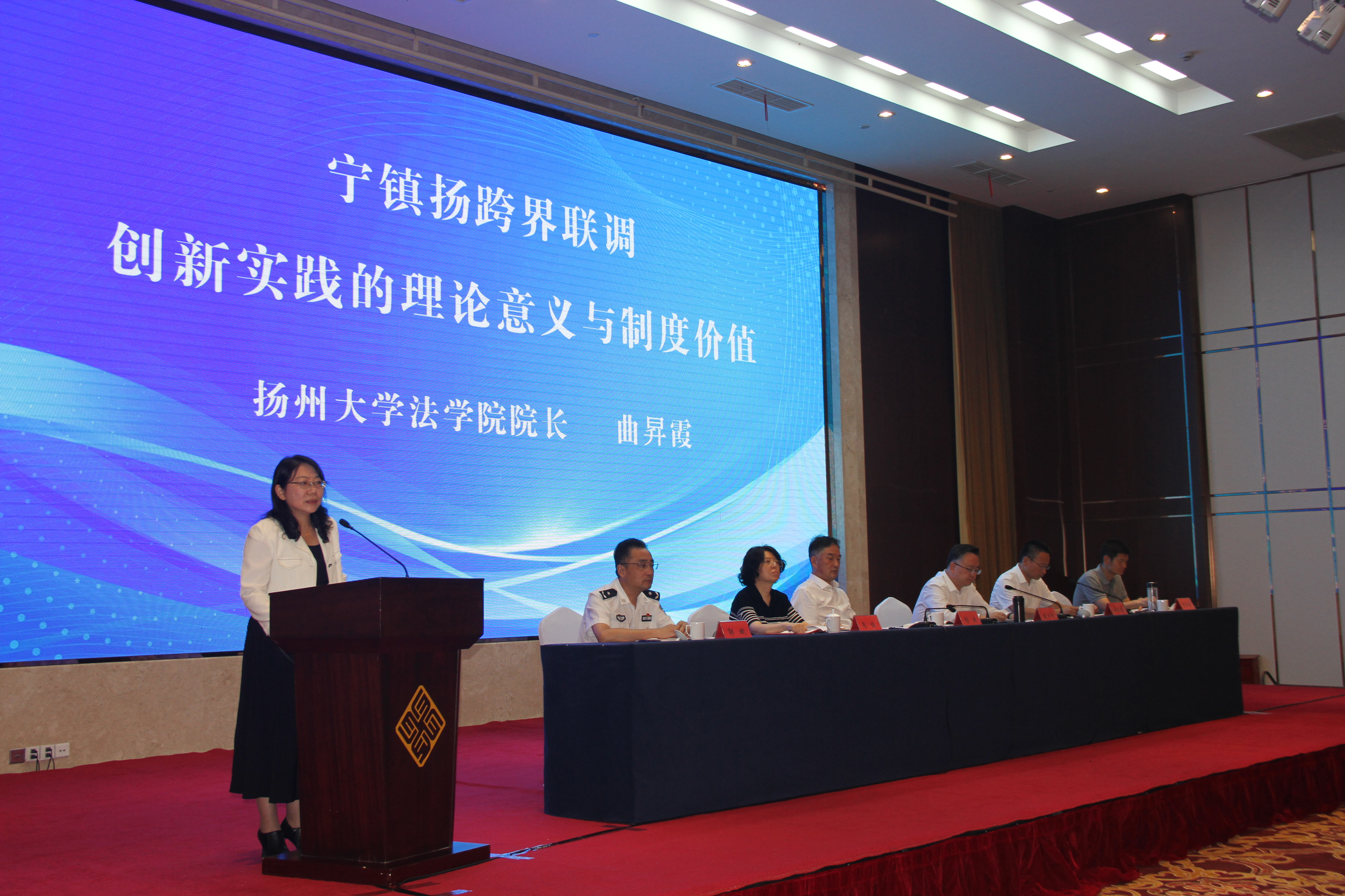 8月13日,宁镇扬跨界纠纷联调工作现场推进会在扬州仪征顺利举行。此次会议旨在贯彻落实宁镇扬一体化发展战略,进一步加强南京、镇江、扬州三地在跨界纠纷联合调解领域的协作,提升区域协同治理能力,为宁镇扬一体化营造和谐稳定的社会环境。扬州市副市长、公安局局长盛卫中,省司法厅二级巡视员彭兵出席会议并讲话,扬州市司法局党组书记、局长姚爱国主持会议。我院曲昇霞院长作为专家代表点评发言。